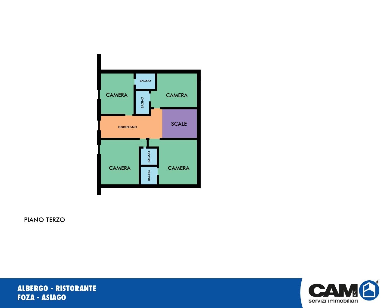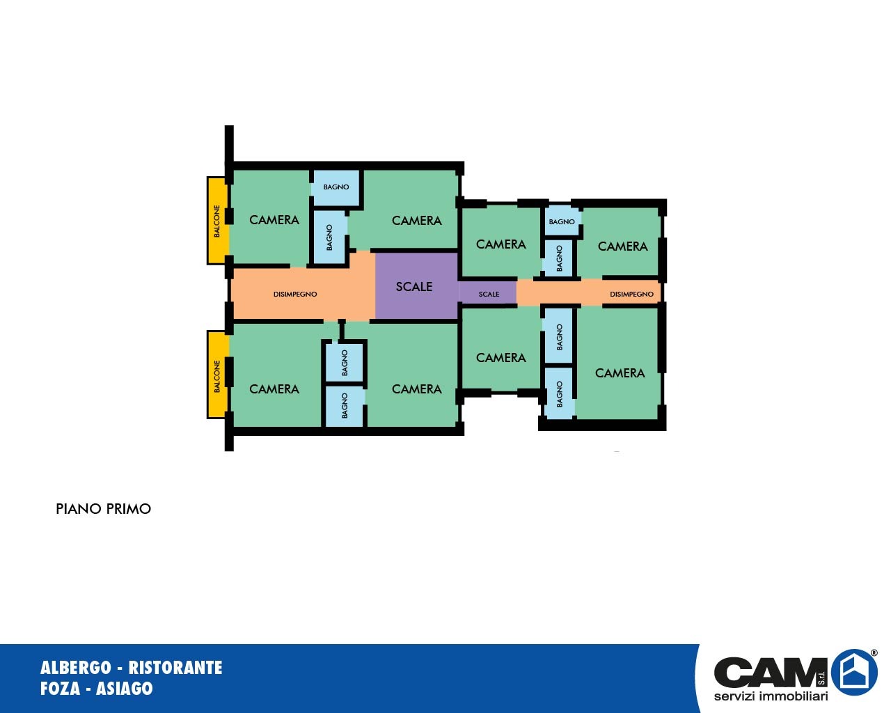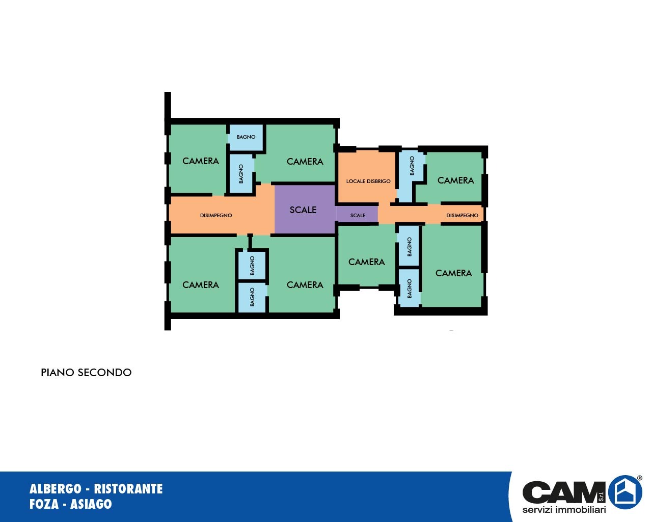 19 camere con servizio, locali di disbrigo, corridoi di accesso.