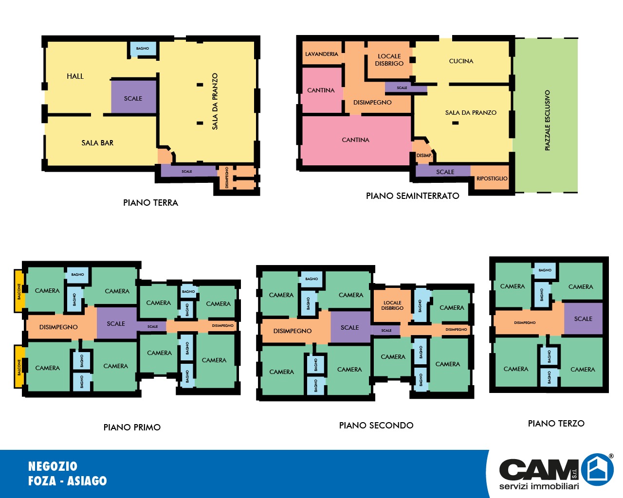 Piano 1° – Piano 2° – Piano 3° di mq. 480,00 circa complessivi: