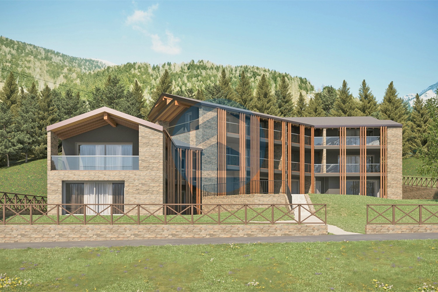 Questo è un intervento architettonico esclusivo e di tendenza, inserito in una delle zone più dinamiche e significative di Ponte di Legno.