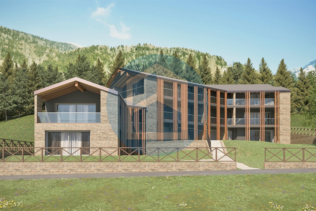 Questo è un intervento architettonico esclusivo e di tendenza, inserito in una delle zone più dinamiche e significative di Ponte di Legno.