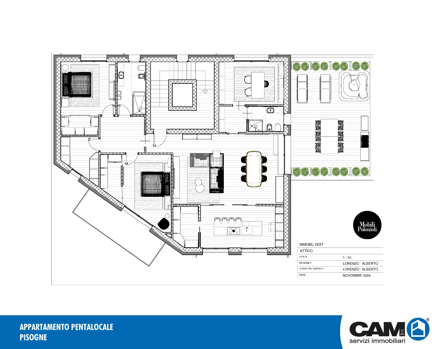 L’appartamento in questione è un esclusivo attico di circa 176,00 metri quadrati, situato al piano terzo.