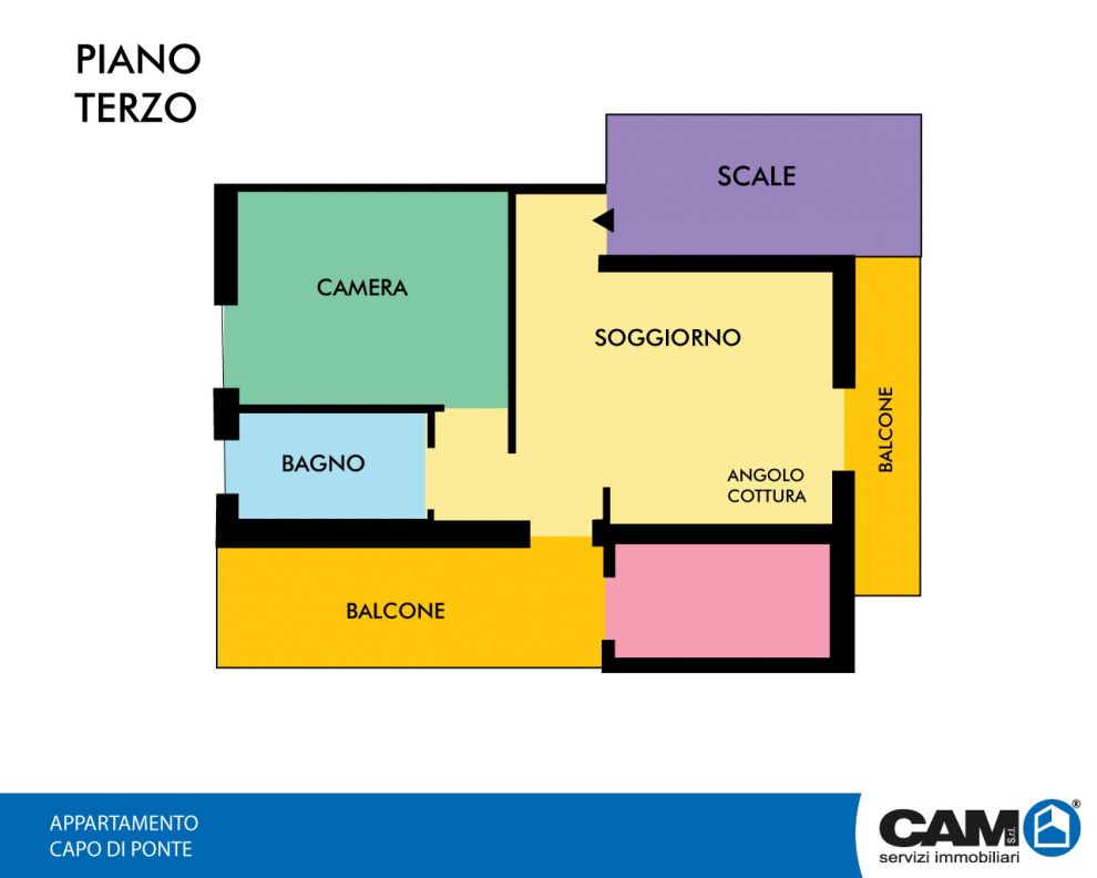 A Capo di Ponte, in posizione centralissima, nei pressi delle scuole, della farmacia e dei principali servizi, comodo ai parcheggi, appartamento bilocale al piano terzo composto da ingresso, soggiorno con angolo cottura con balcone ed ampio terrazzo di mq. 12,00 circa, disimpegno, camera matrimoniale e servizio.
