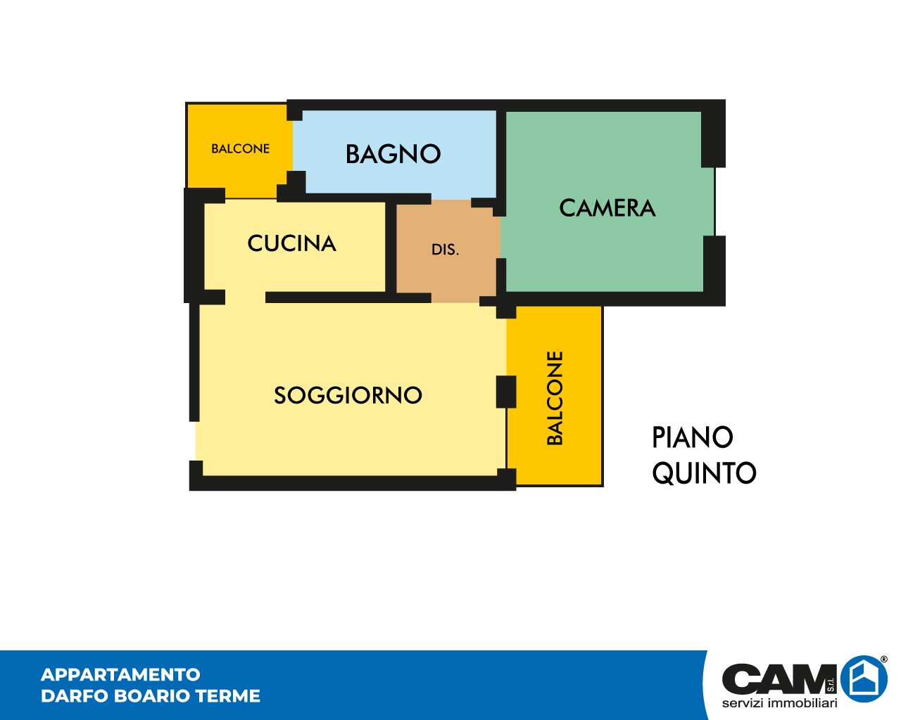 L’immobile è composto da soggiorno, cottura separata, camera da letto matrimoniale e bagno oltre a 2 balconi di mq. 8 ca. totali.