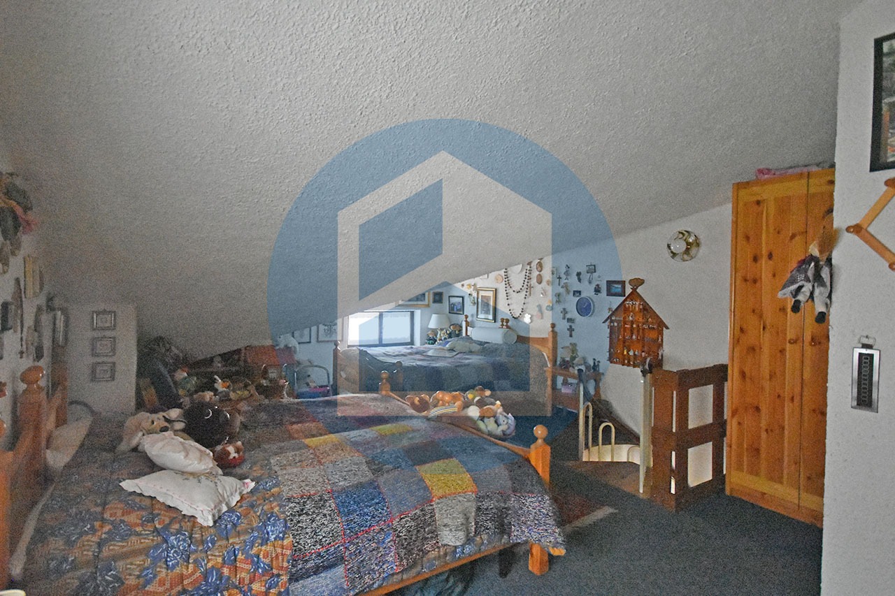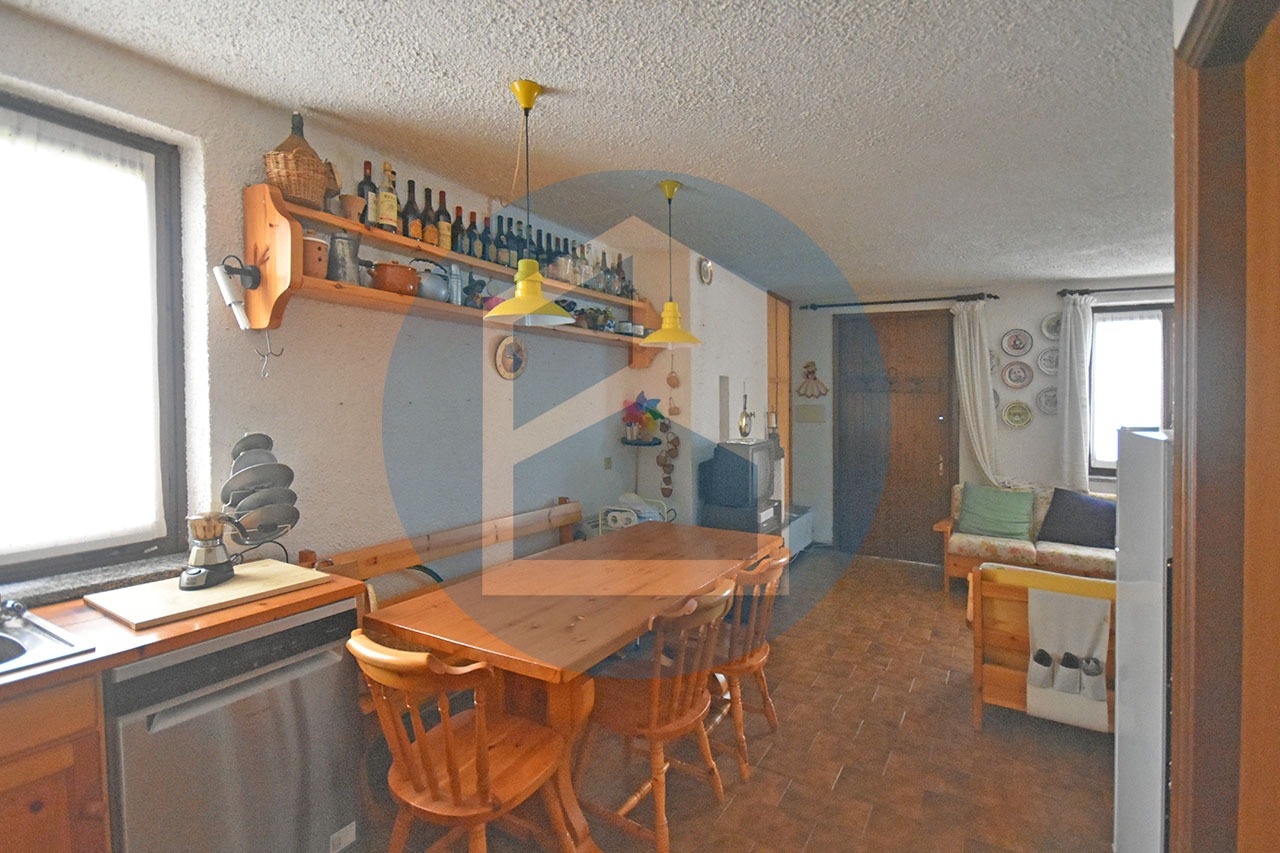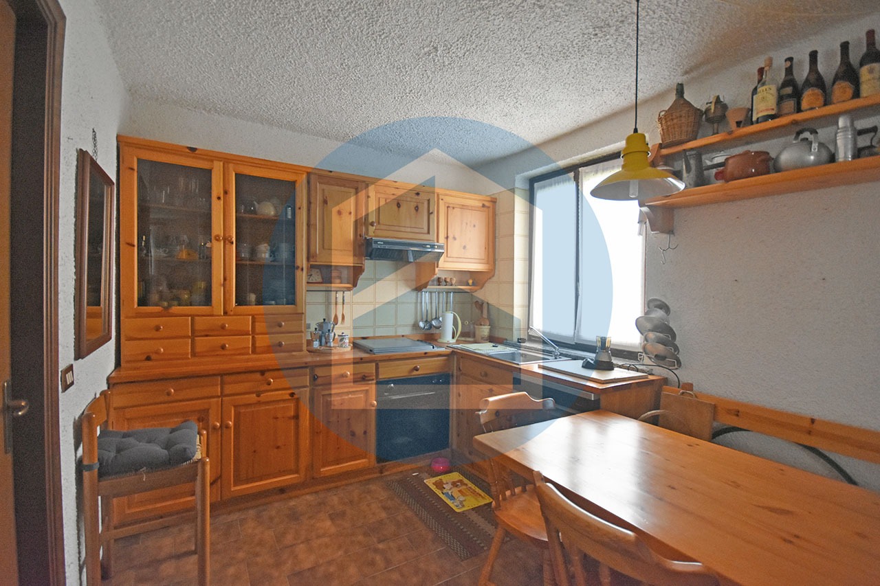 Il legno fa da padrone per quanto riguarda l’arredo, finiture ed infissi, conferendo all’appartamento il clima caldo e confortevole tipico degli alloggi montani.