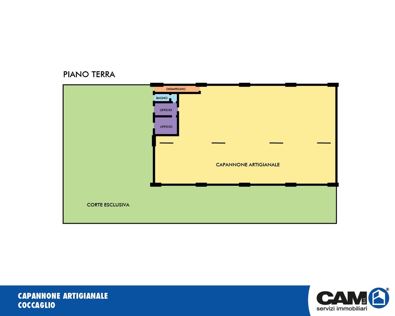 a Coccaglio, in complesso artigianale di maggior consistenza, capannone al piano terra di mq. 1.600,00 ca. suddiviso in due campate di mq. 800,00 ca. cadauna con uffici e servizi, libero su due lati.