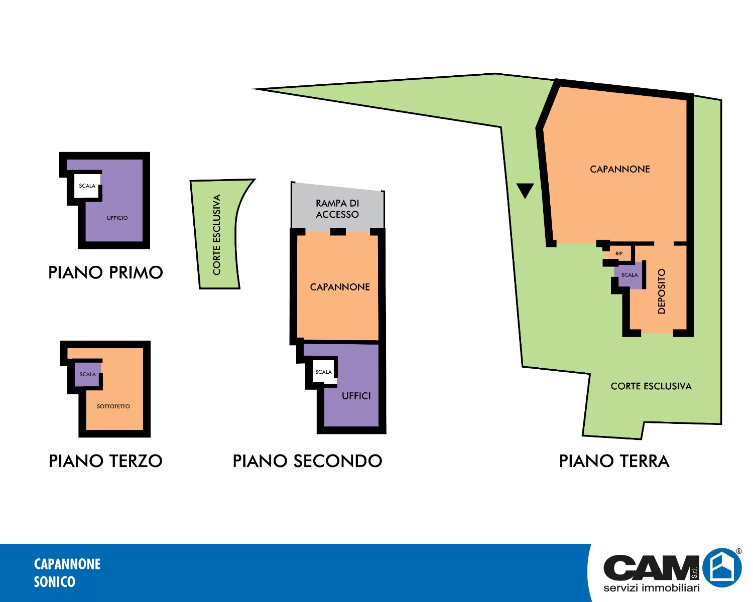 A Sonico in zona commerciale/direzionale nei pressi dei grandi centri commerciali, interessante immobile indipendente depositi/magazzini con uffici oltre ad area esterna privata da adibire a parcheggi.