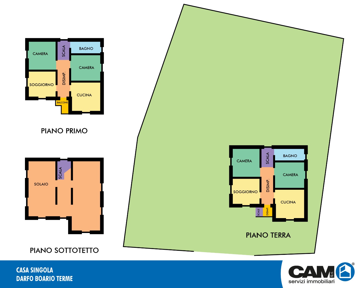Boario Alta, in zona riservata nei pressi della struttura RSA Angelo Maj, casa singola con ampia area esterna disposta su tre livelli composta da due trilocali e due mansarde.