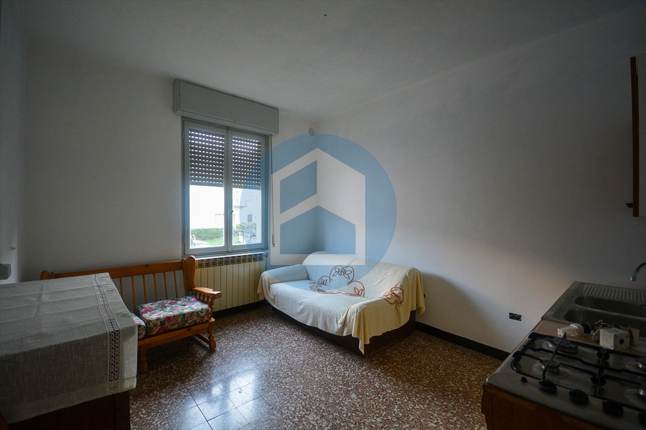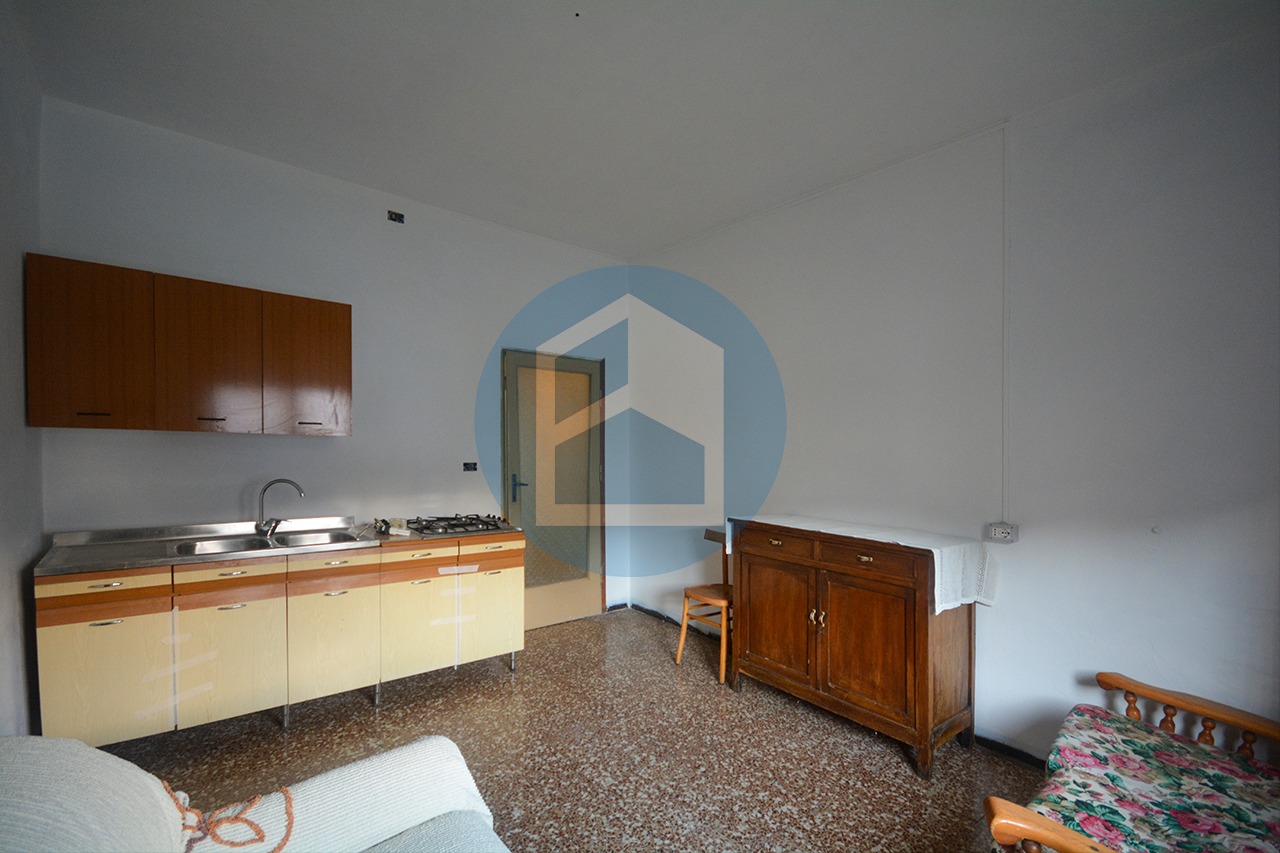 Al piano terra si trova il primo appartamento, un bilocale di generose dimensioni composto da soggiorno, cucina separata, camera matrimoniale e bagno.