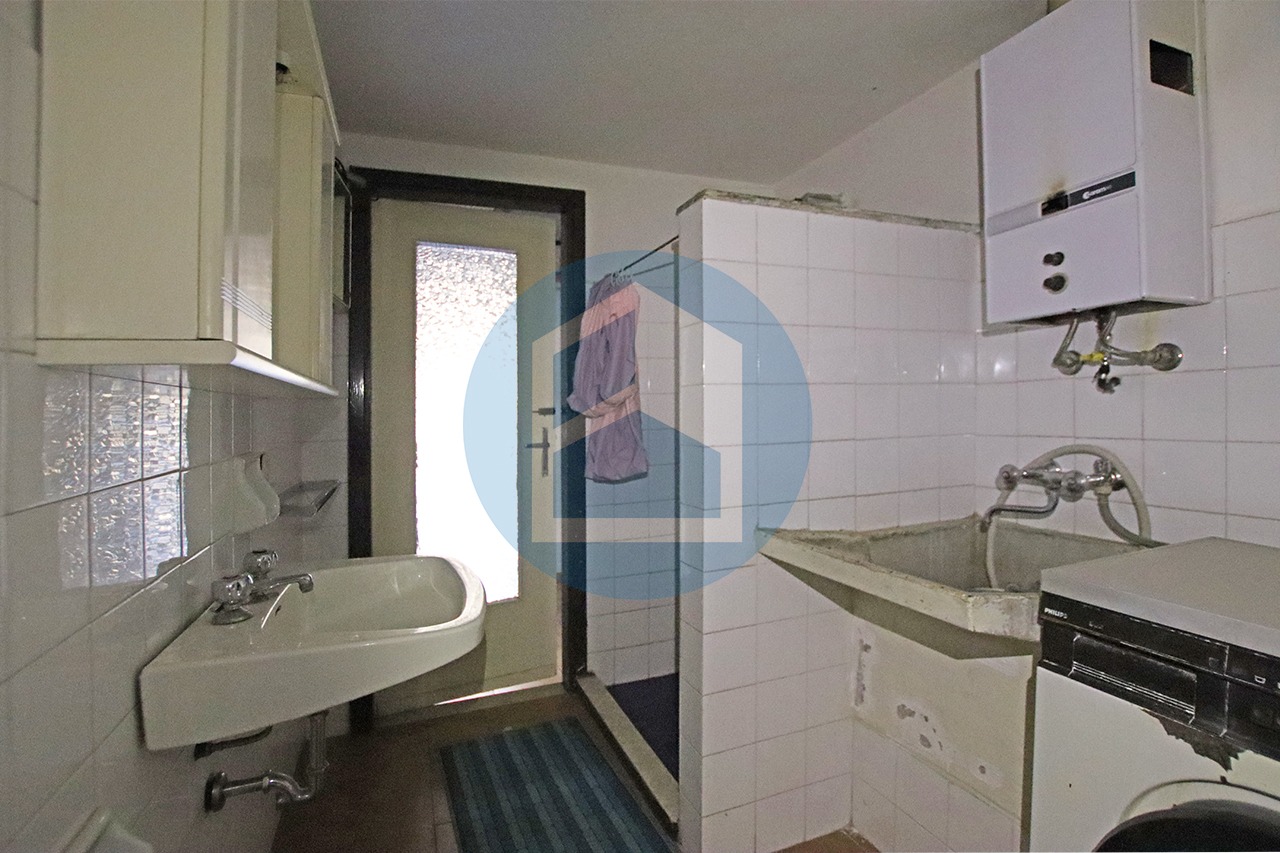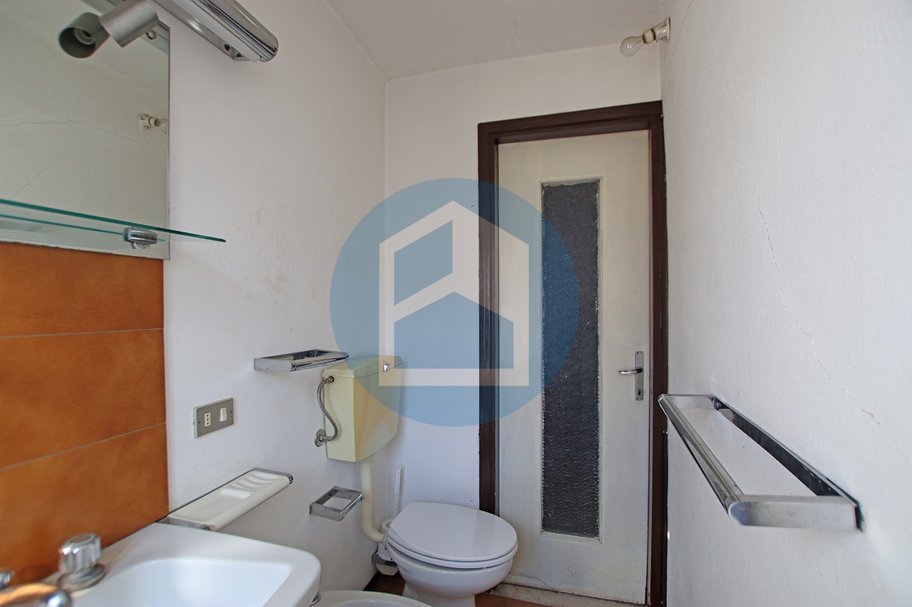 Proseguendo verso la rampa delle scale si raggiungono un primo bagno ed un locale ad uso ripostiglio.