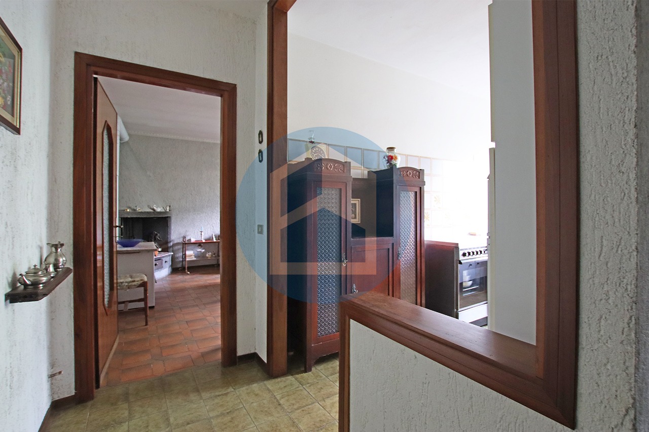 Mediante una scala esterna è possibile accedere alla zona giorno del primo immobile dove si trovano, ai lati del disimpegno e vano scala, un soggiorno ed una cucina con sala da pranzo.