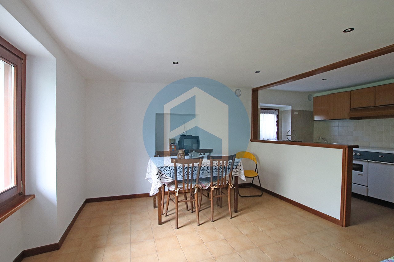 Mediante una scala esterna è possibile accedere alla zona giorno del primo immobile dove si trovano, ai lati del disimpegno e vano scala, un soggiorno ed una cucina con sala da pranzo.