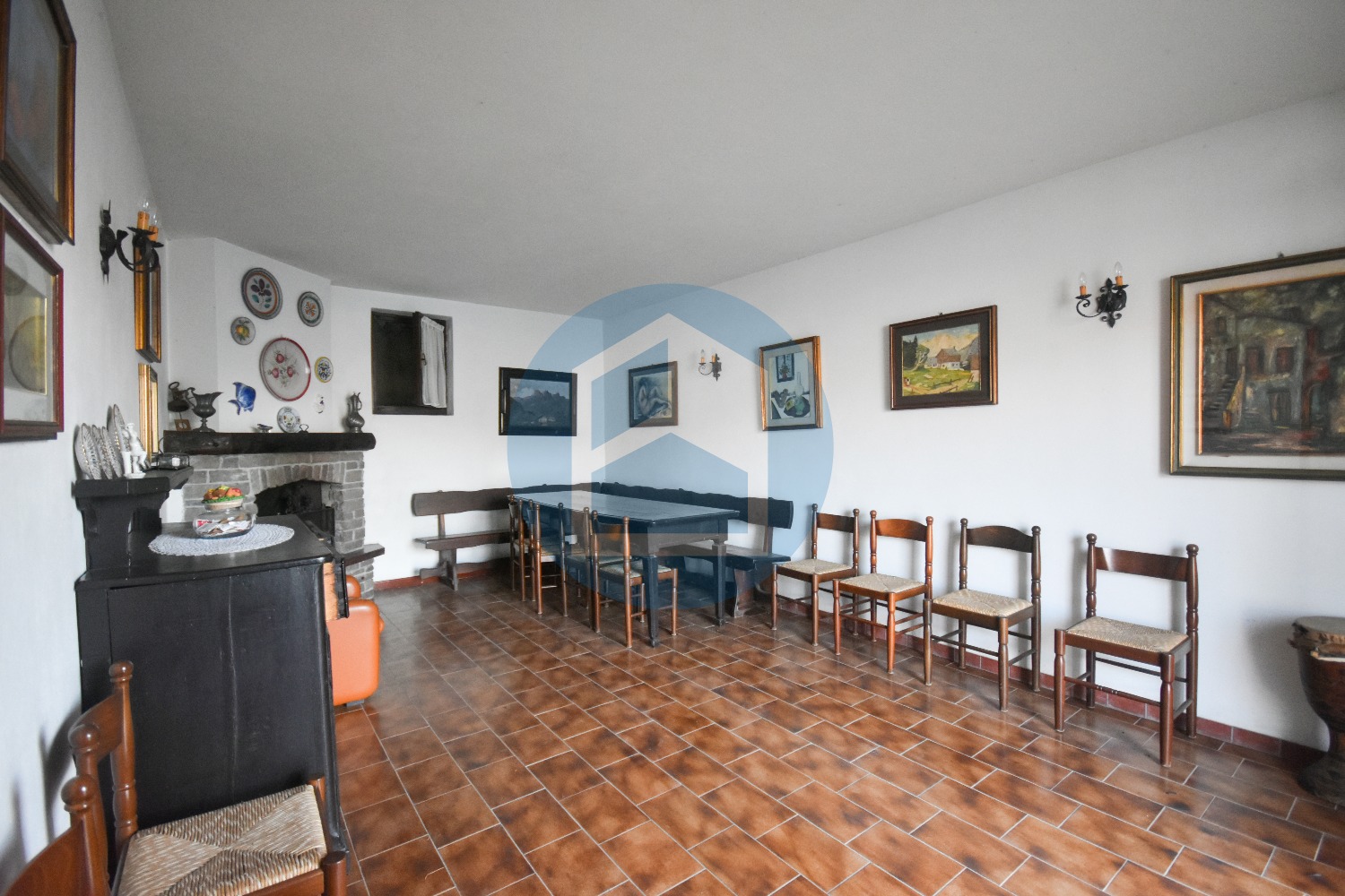 Attualmente l’immobile, provvisto di allacciamento acqua e luce, è scaldato a mezzo stufe e nel soggiorno è presente anche un bellissimo caminetto.