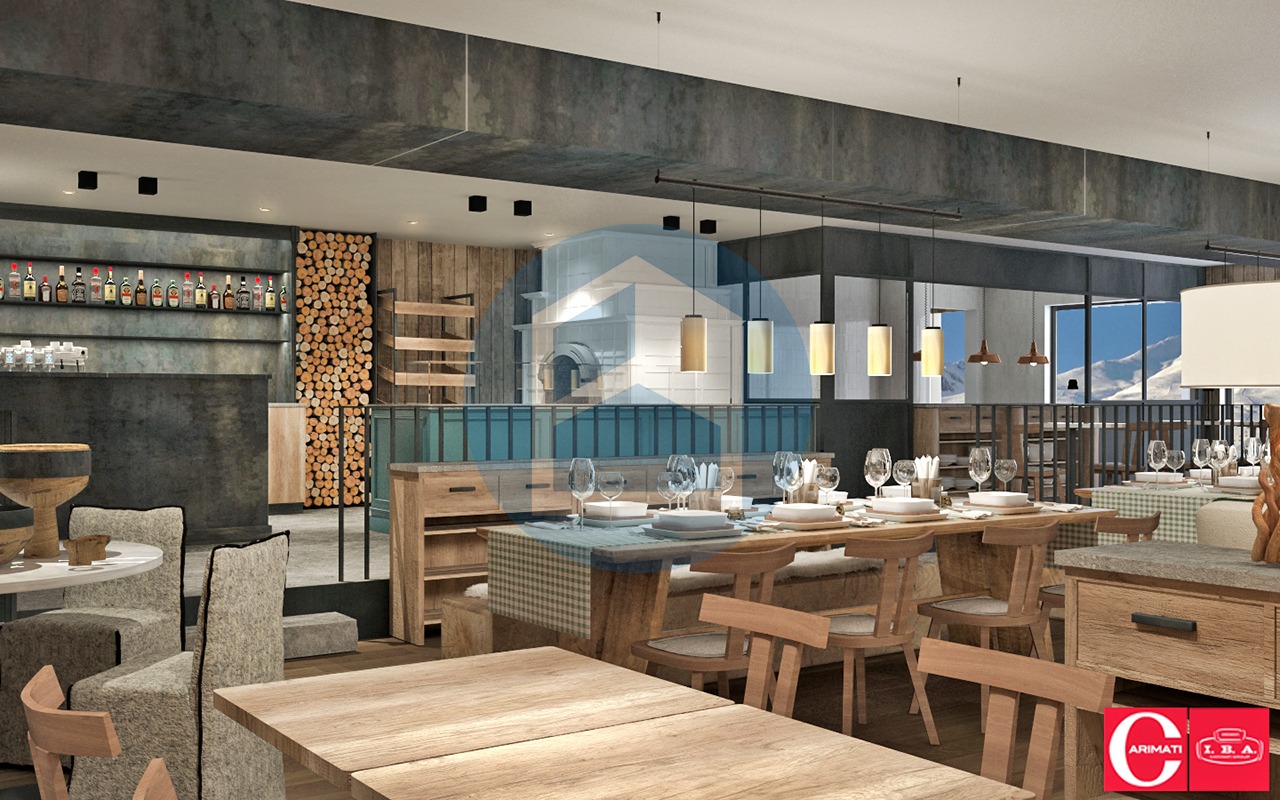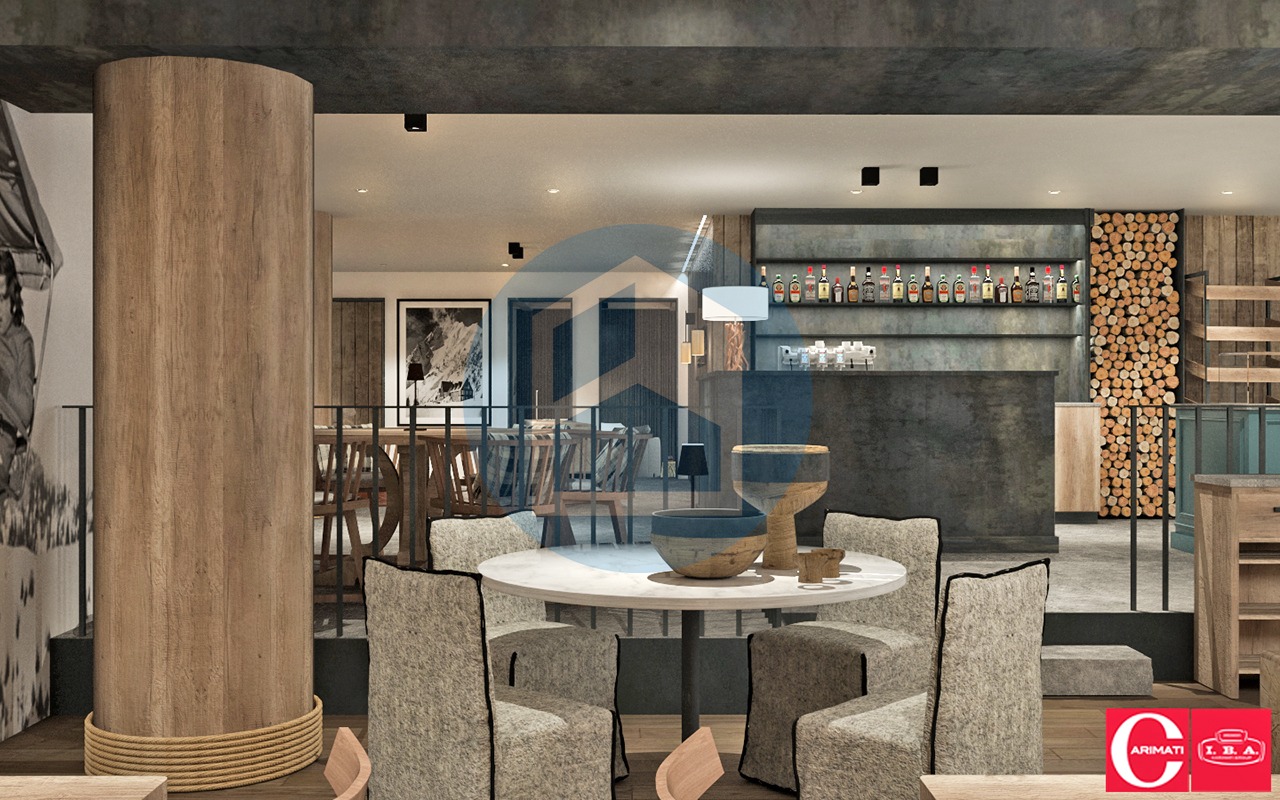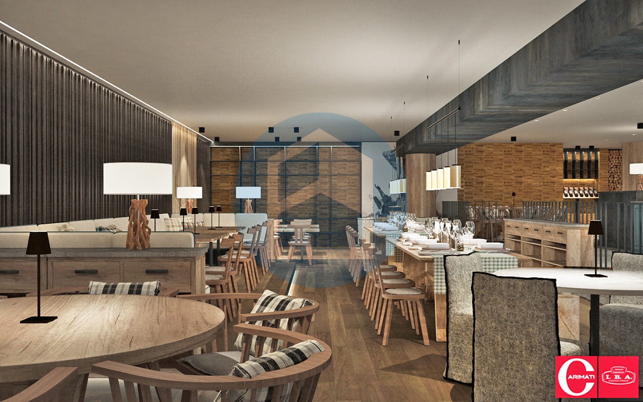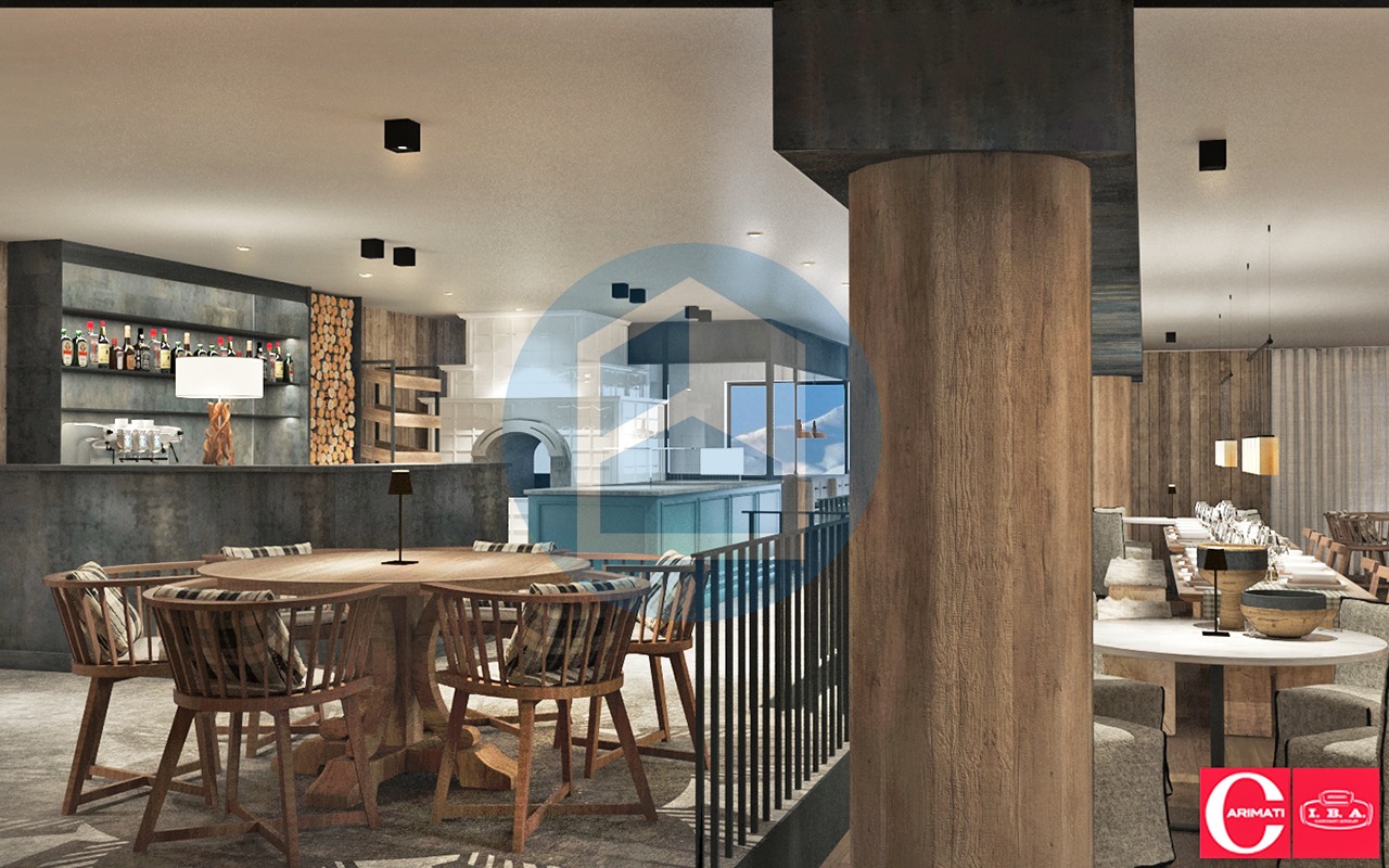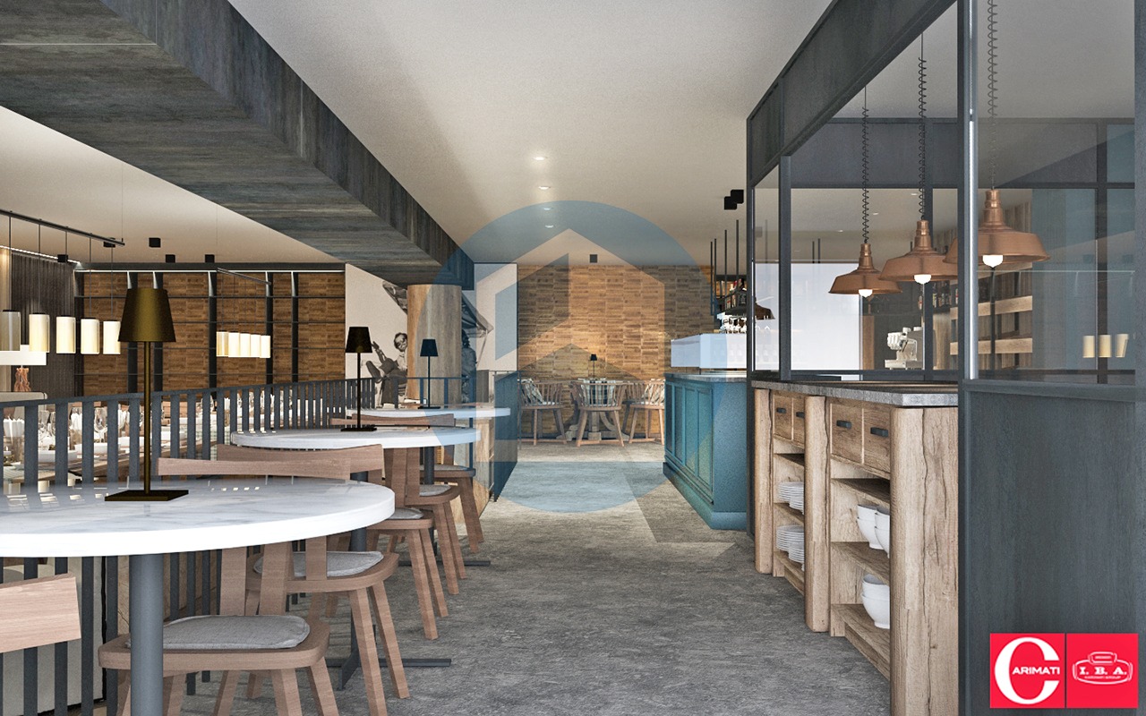 Nel progetto di riqualificazione risulta composto dai seguenti vari ambienti: attraversando l’atrio e l’ingresso si viene accolti dall’area Reception & Enoteca la qual conduce, poi, alla grande zona living dotata di angolo Bar/Pizzeria, due locali cucina e la grande sala da pranzo open space.