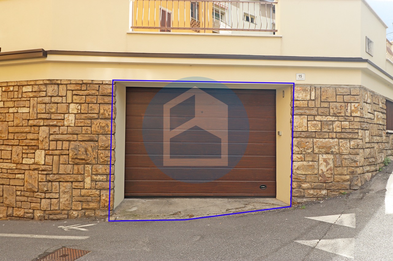 Da entrata separata, sull’angolo con Via Corno Cerreto, ampio posto auto coperto di proprietà chiuso da porta sezionale automatica.