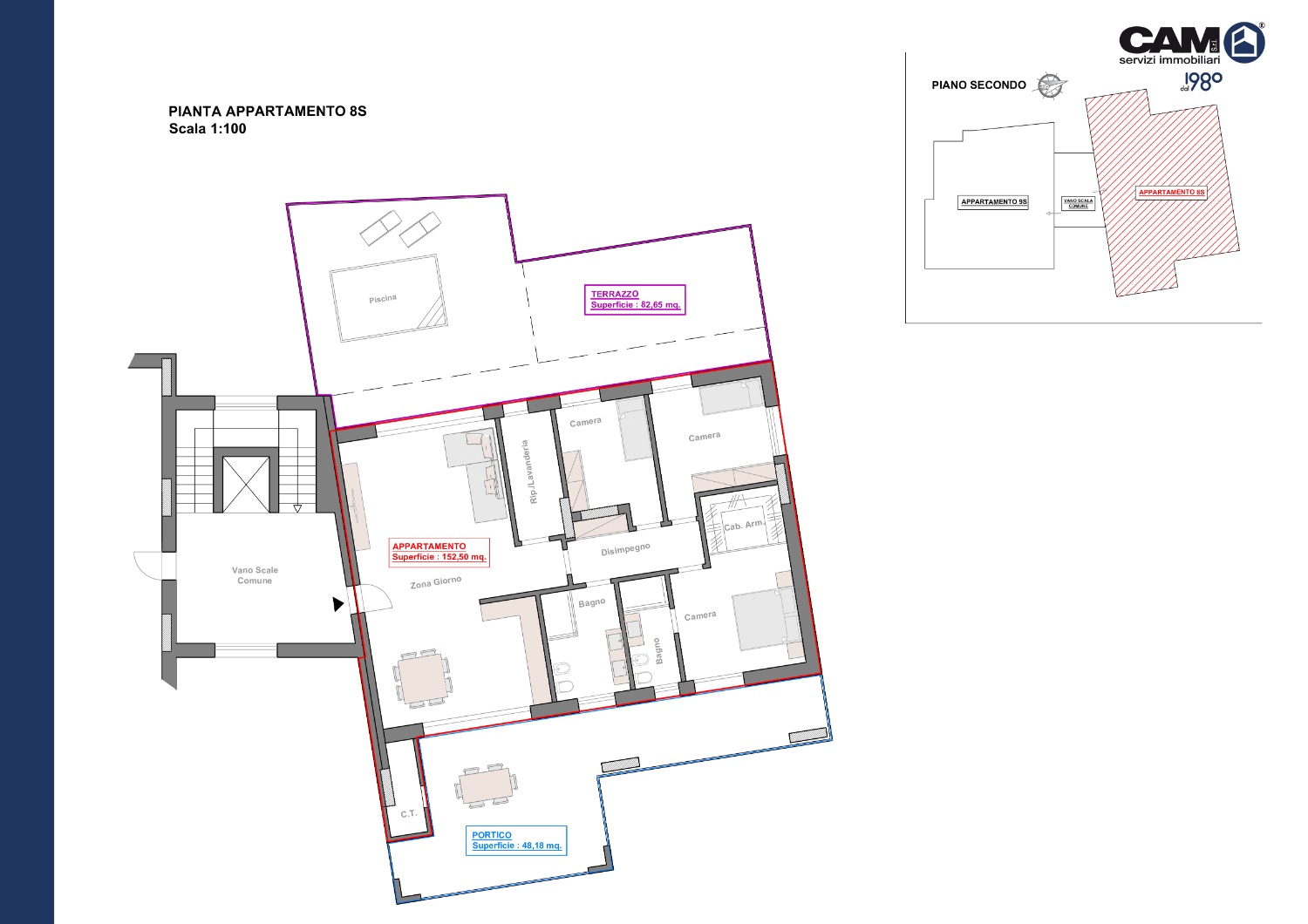 L’immobile offre una spaziosa e luminosa zona giorno openspace, che si apre direttamente sia sul portico di mq. 48,18 ca. che al terrazzo di mq. 82,65 ca., questi spazi esterni rappresentano un vero valore aggiunto, perfetti per godersi momenti di relax all’aria aperta.