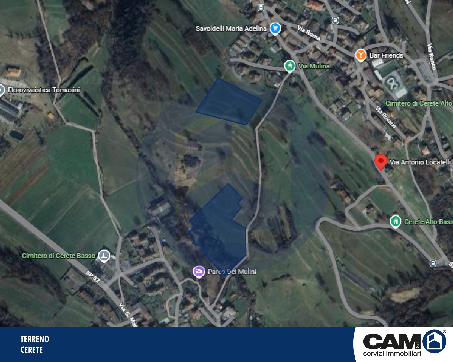 A Cerete (BG), ricompresi tra le due località di Cerete Alto e Cerete Basso, proponiamo due lotti di terreno agricolo in corpi staccati, per una superficie complessiva di circa 13.555,00 mq.