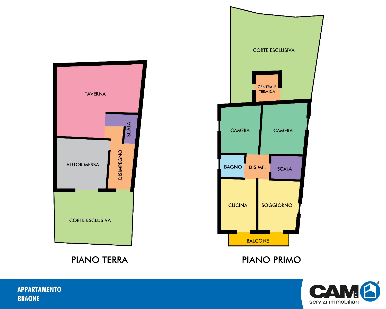 A Braone, in zona centrale, tranquilla e ben esposta, appartamento trilocale di mq. 75,00 ca. al piano primo in casa bifamiliare. Comodo balcone nel reparto giorno.