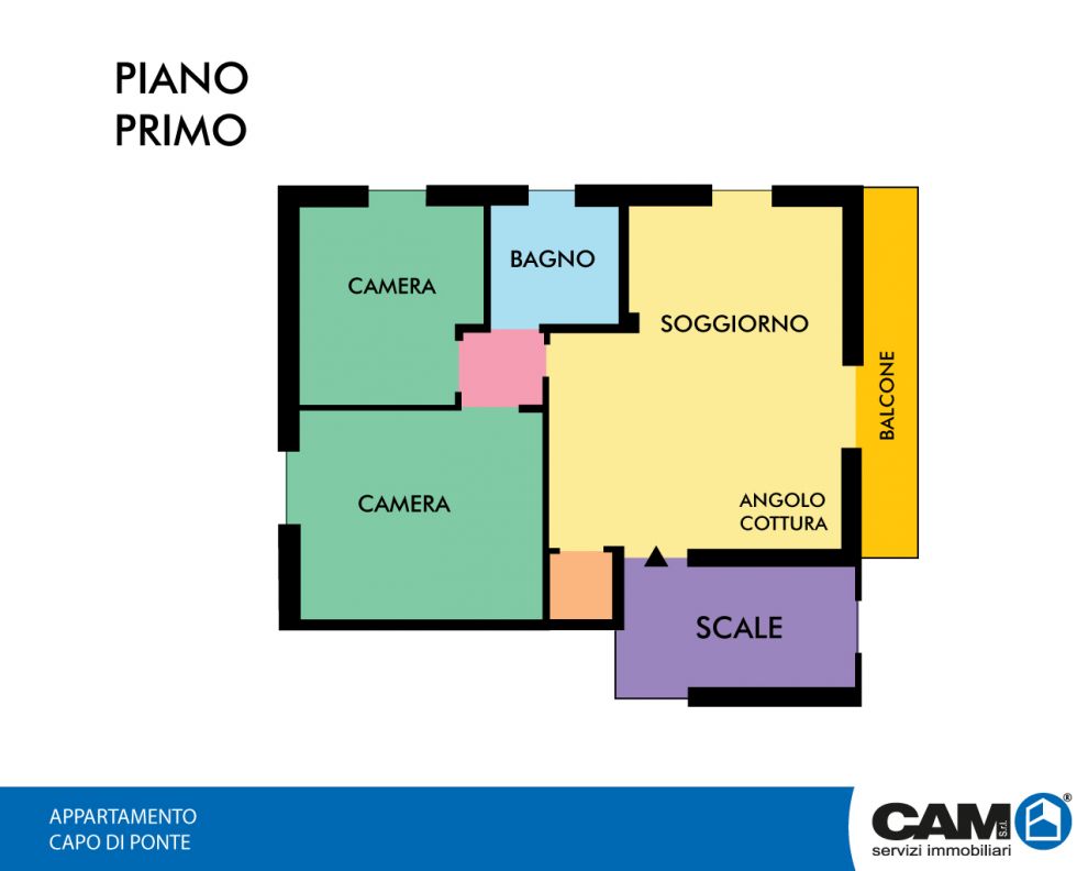 A Capo di Ponte, in posizione centralissima, nei pressi delle scuole, della farmacia e dei principali servizi, comodo ai parcheggi, appartamento trilocale al piano rialzato/primo, composto da ingresso, soggiorno con angolo cottura e balcone, ripostiglio, disimpegno, due camere di cui una matrimoniale e servizio.