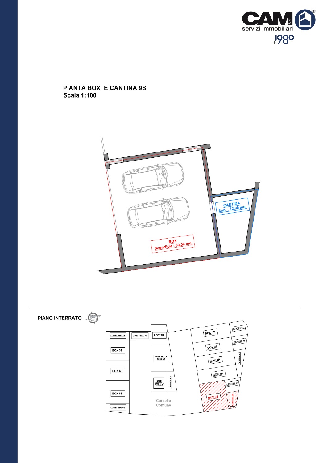 Completano l’immobile al Piano Interrato: box auto doppio di mq. 60,50 ca. perfetto sia per chi possiede due vetture sia per chi desidera utilizzare uno spazio come deposito per biciclette o attrezzi, oltre a una cantina di mq. 12,00 ca. che offre ulteriore spazio di stoccaggio.