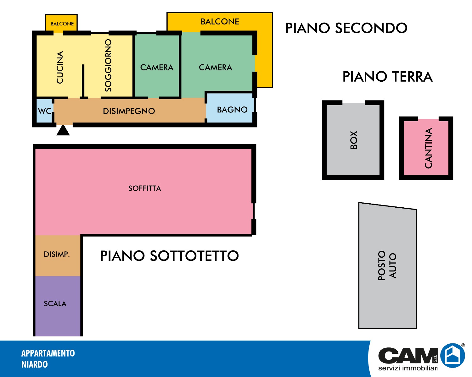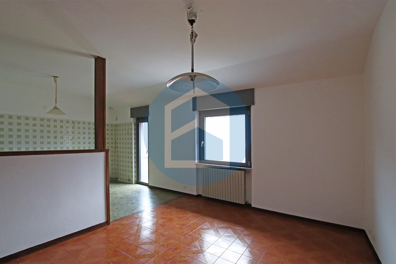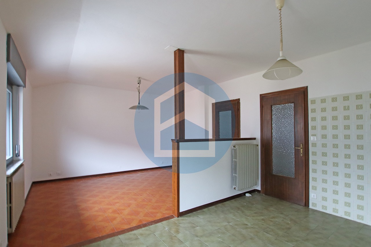 L’immobile è composto da soggiorno, cucina da cui si accede al balcone, disimpegno, servizio della zona giorno, camera matrimoniale con balcone, camera singola e bagno finestrato della zona notte; al piano superiore sottotetto esclusivo ripostiglio/deposito di mq. 97,00 ca..