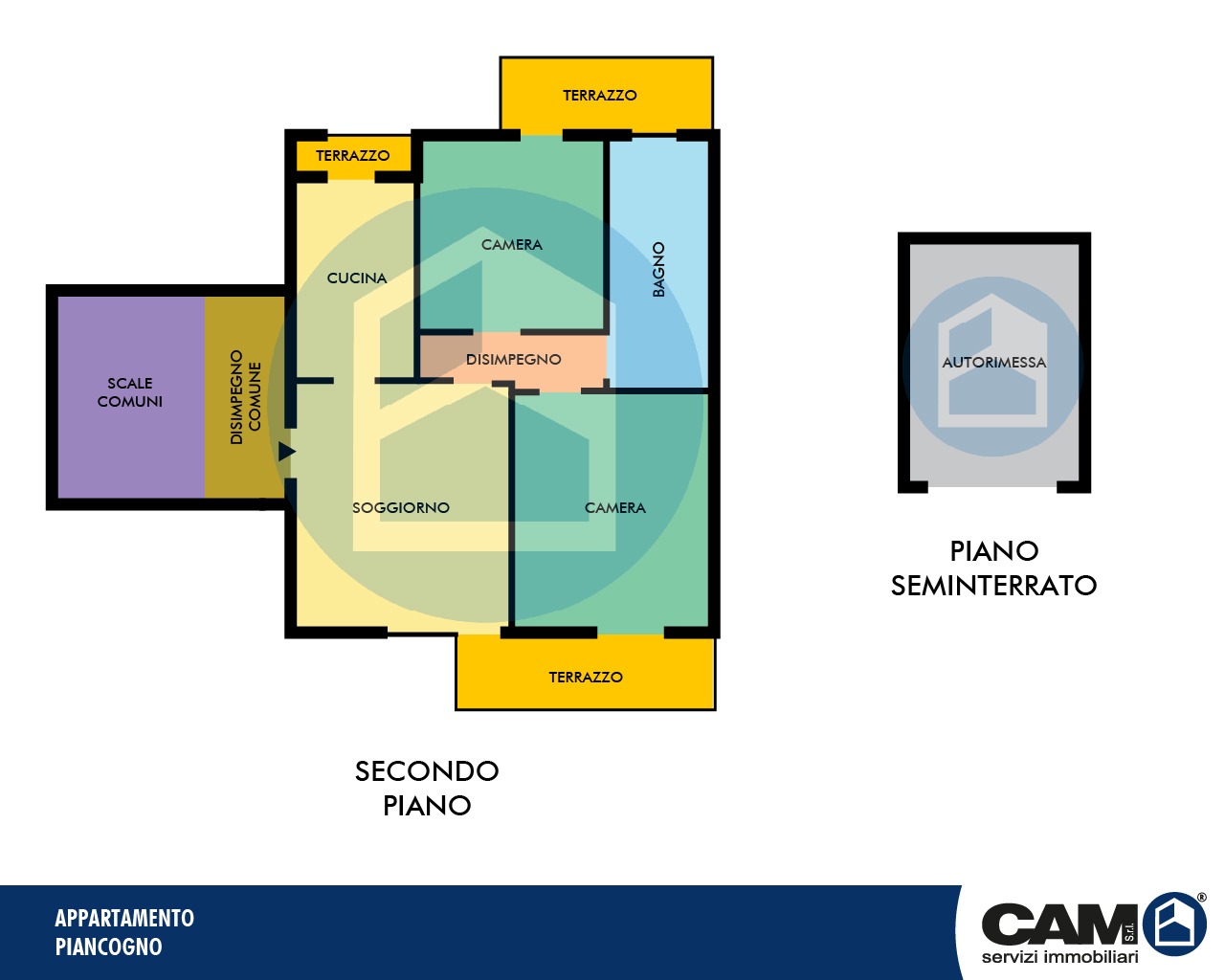 La zona notte ospita due camere da letto di generose dimensioni e un bagno finestrato. Ogni stanza ha l’accesso a uno dei tre terrazzi, valorizzando ulteriormente gli spazi esterni.