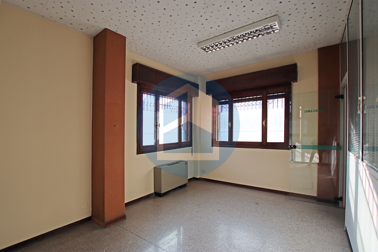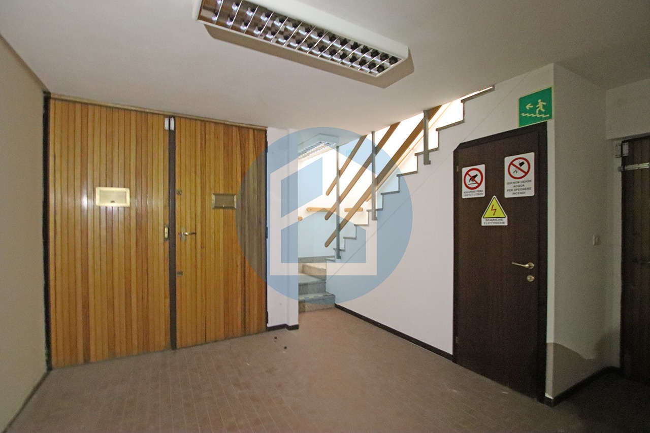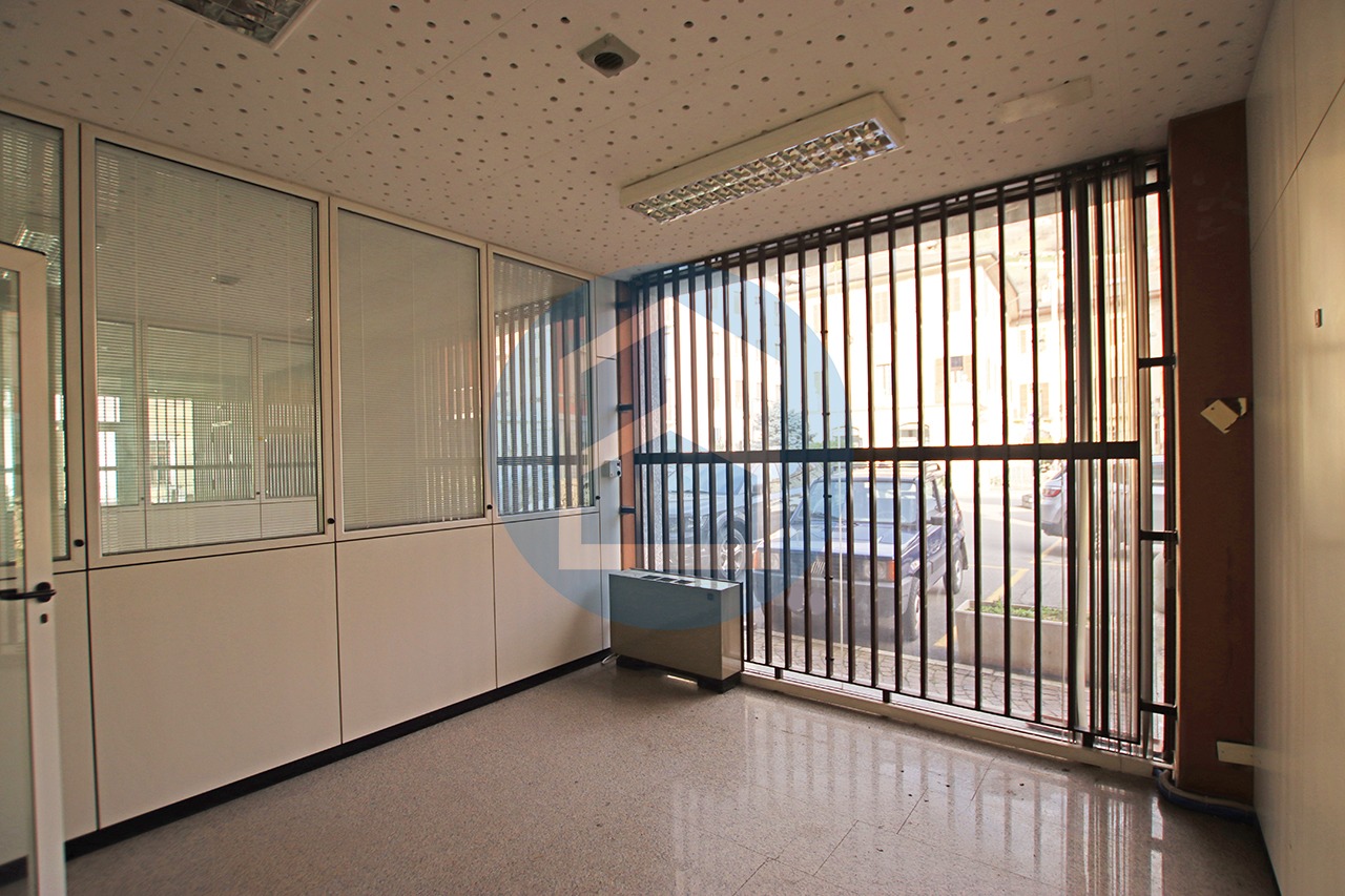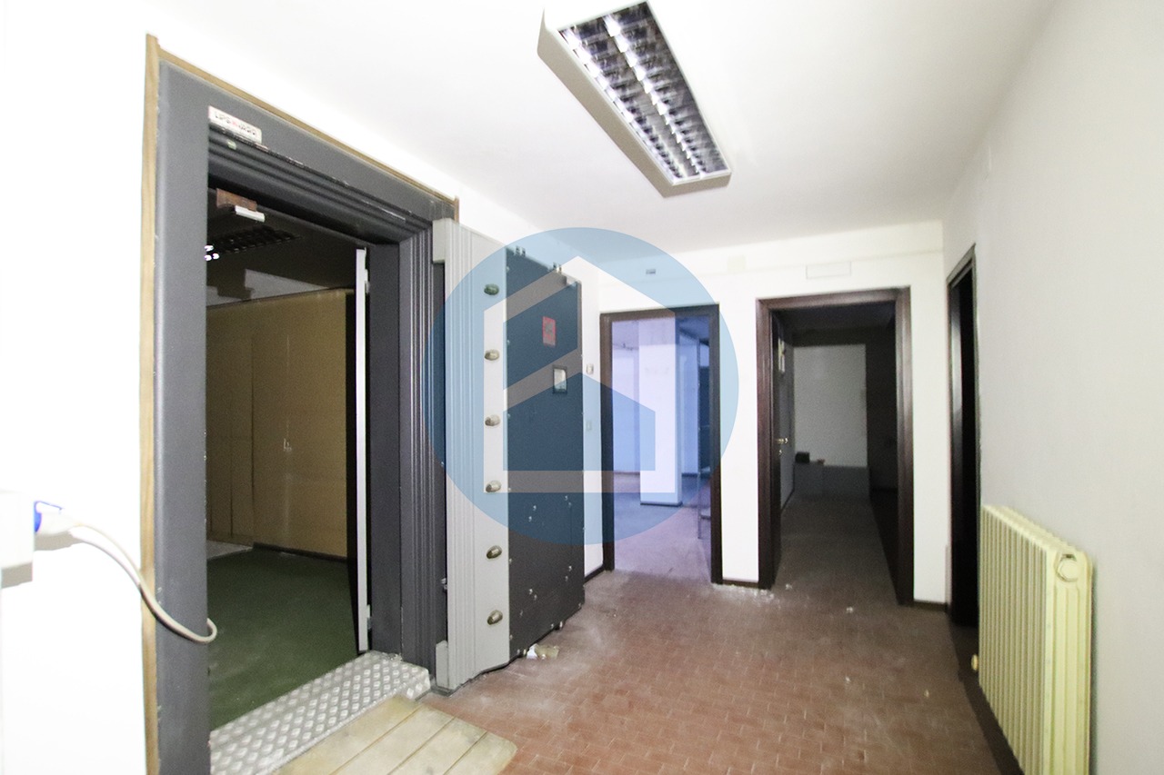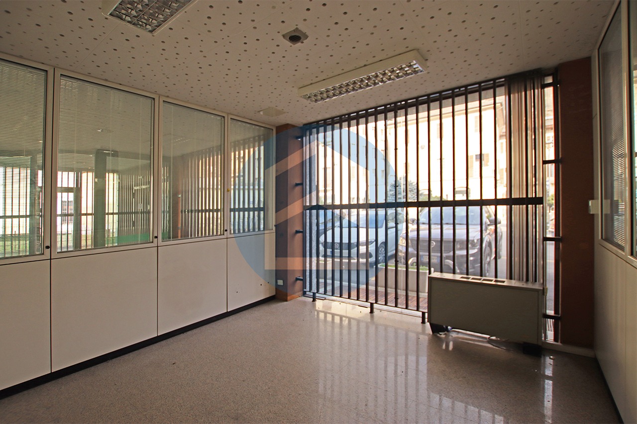 L’accesso avviene dal parcheggio antistante il condominio, tramite un ingresso posto sul lato nord dell’edificio; l’immobile è dotato di servizi, locali uffici e caveau.