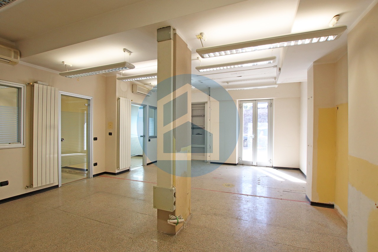L’ufficio è disposto su un unico livello con ingresso in un ambiente open-space, due uffici separati, servizi igienici ed un archivio sul retro.
