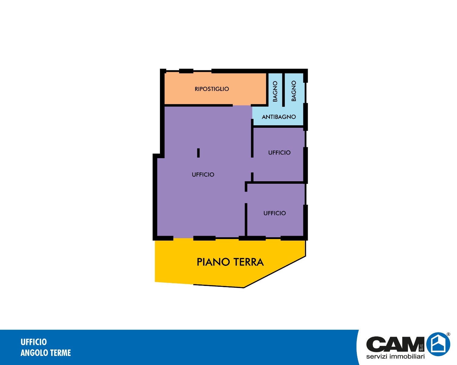 Ad Angolo Terme all’ingresso del paese e prospiciente la piazza principale, ufficio / negozio, in vendita.