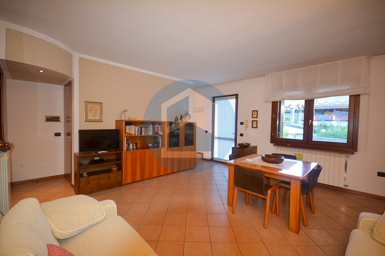 Attraversando il vialetto d’ingresso ed il piccolo portico si accede alla proprietà entrando nel luminoso e comodo soggiorno e sala da pranzo, collegato attraverso una porta alla cucina separata dotata di balcone.