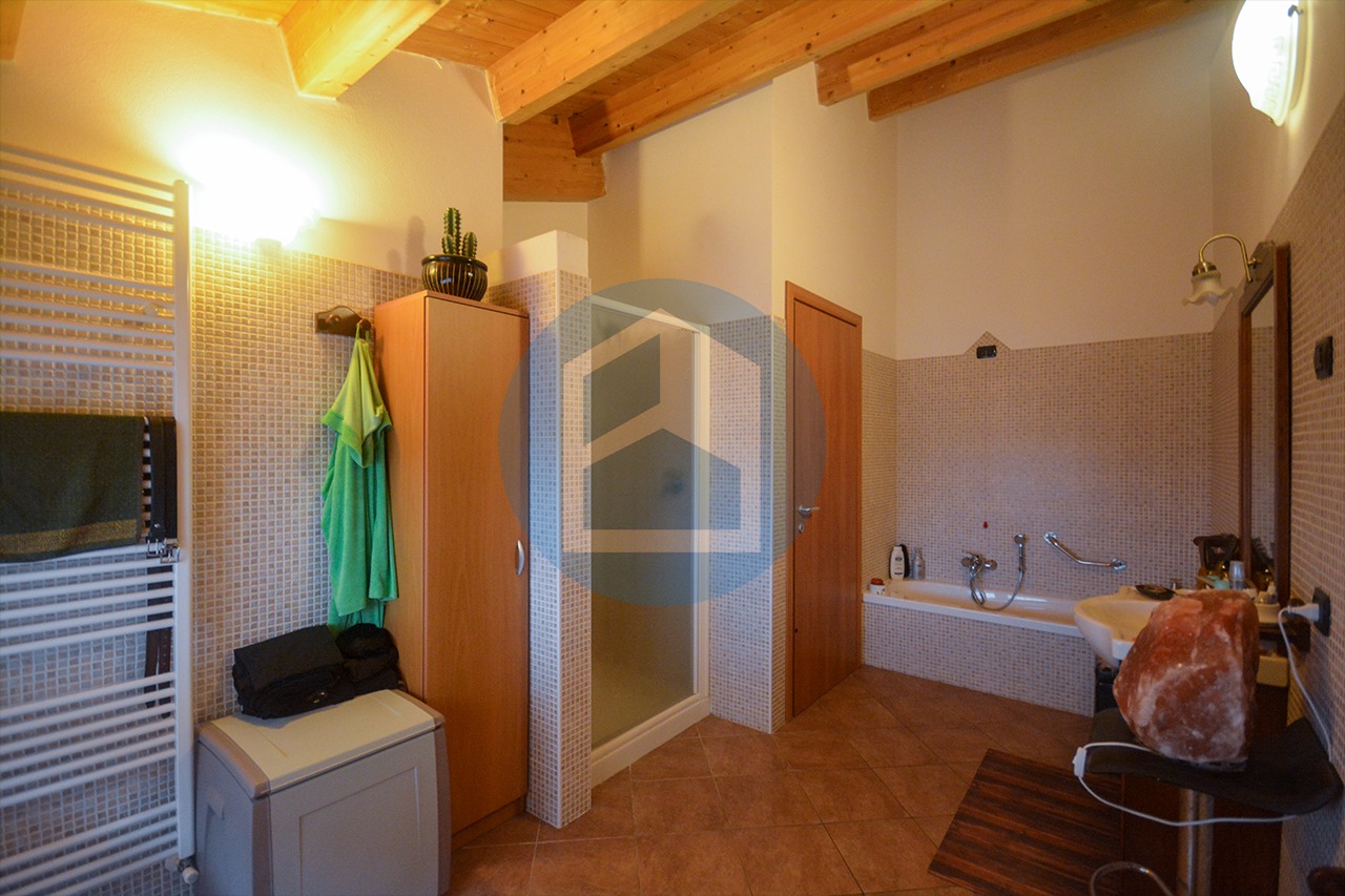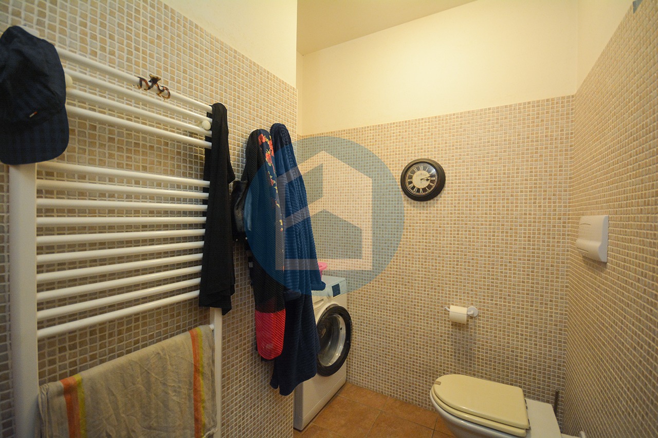 Collegato internamente alla casa si trova un box auto di mq. 30 ca. con basculante elettrica e dotato di acqua corrente, perfetto per chi desidera praticità e spazio aggiuntivo.