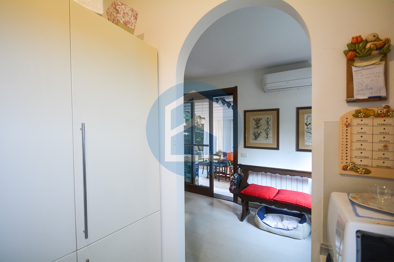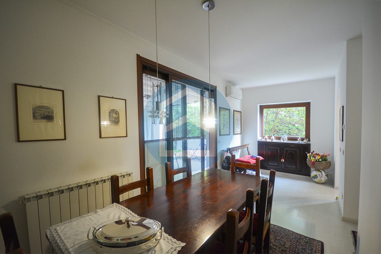 Al piano terra si viene accolti da una luminosa zona giorno con cucina separata che affacciano sul portico e sul giardino privato ideali per momenti di relax all’aria aperta.
