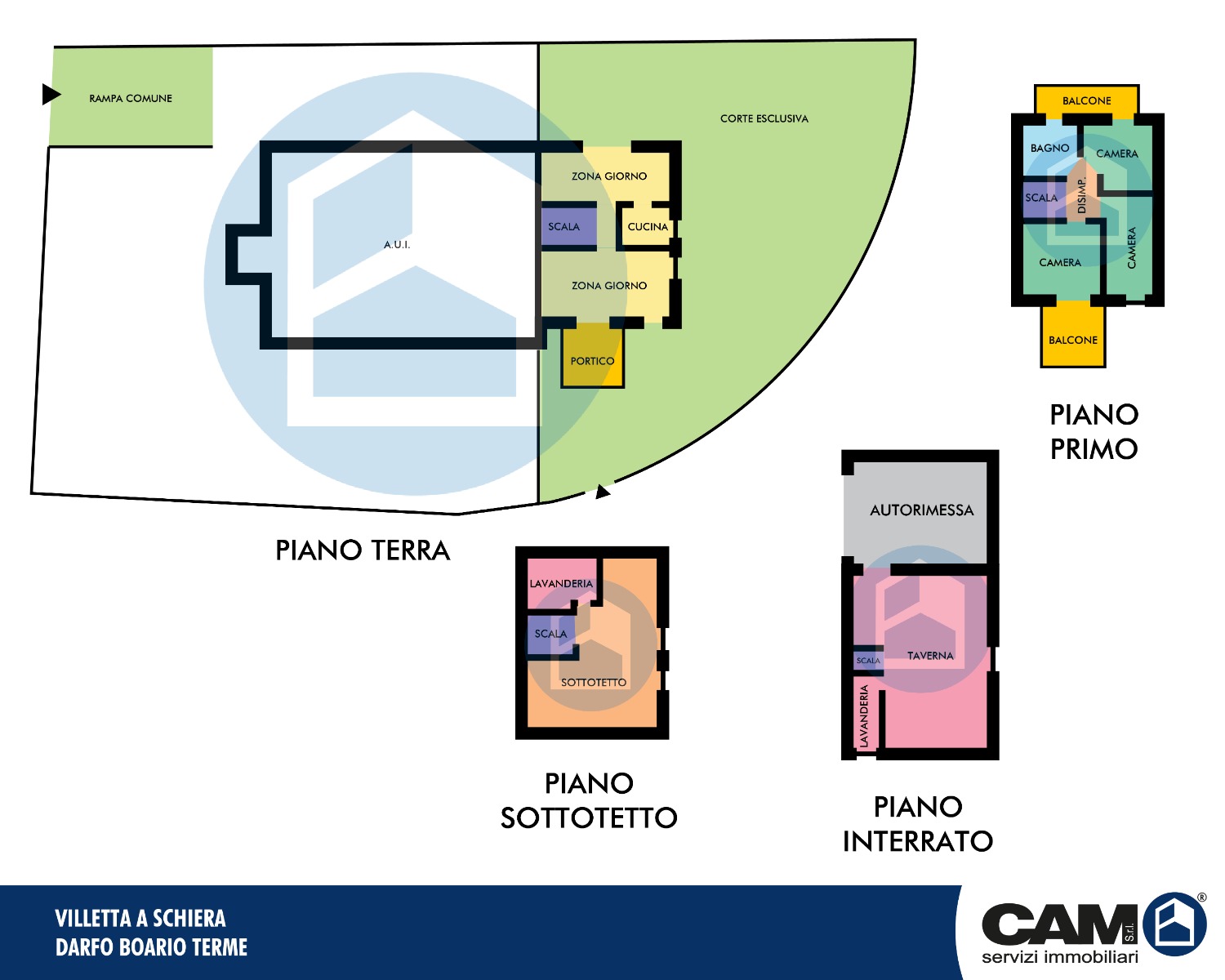 In contesto residenziale ordinato e tranquillo, villetta a schiera di testa di mq. 220 ca. totali sviluppata su tre piani fuori terra oltre a piano interrato con giardino esclusivo e spazi funzionali e ben distribuiti.