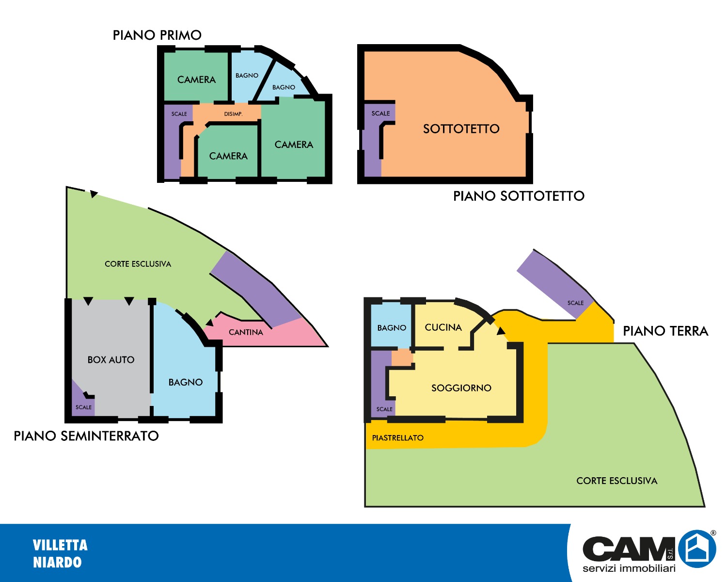 A Niardo, in ottima posizione, ben esposta e comoda ai principali servizi, villa bifamiliare venduta ultimata e chiavi in mano, disposta su tre livelli di mq. 70,00 ca. ciascuno.