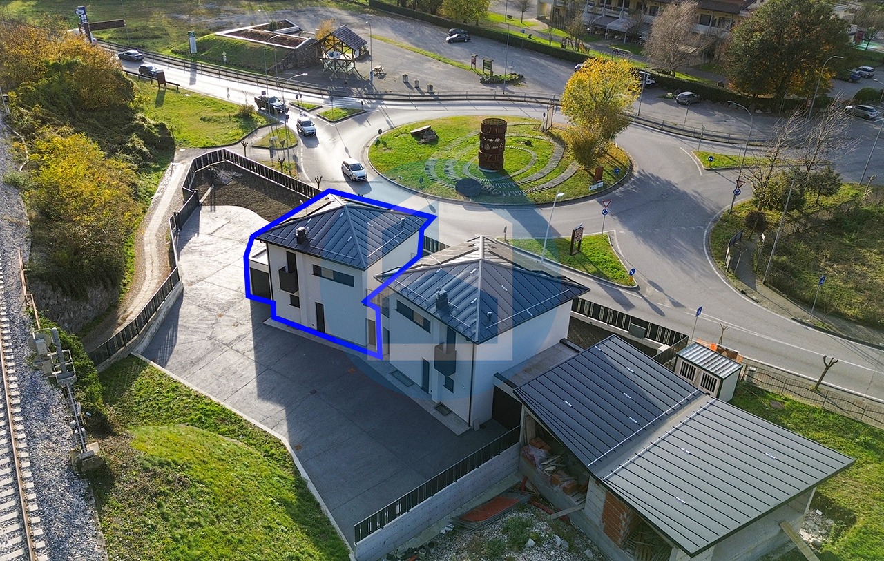 A Capo di Ponte, all’ingresso del paese, in un contesto piacevole e di massima tranquillità, villa singola di nuova costruzione libera su 4 lati.