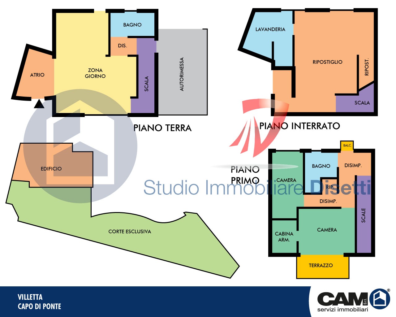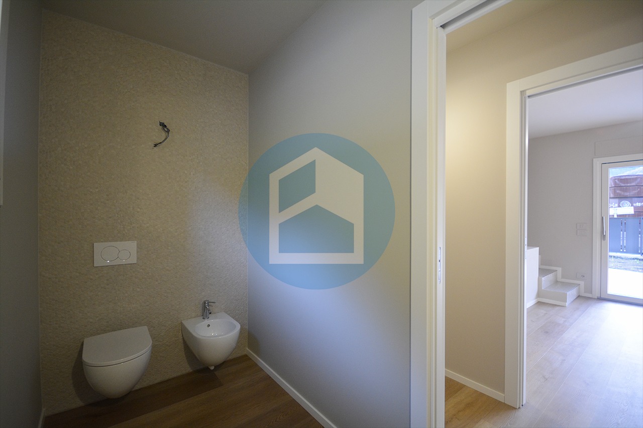 L’unità, costruita seguendo i più moderni standard abitativi, è disposta su 3 livelli di cui 2 fuori terra ed è circondata da corte esterna esclusiva di mq. 250,00 ca. di cui mq. 180,00 ca. di giardino e mq. 70,00 ca. di plateatico pavimentato.