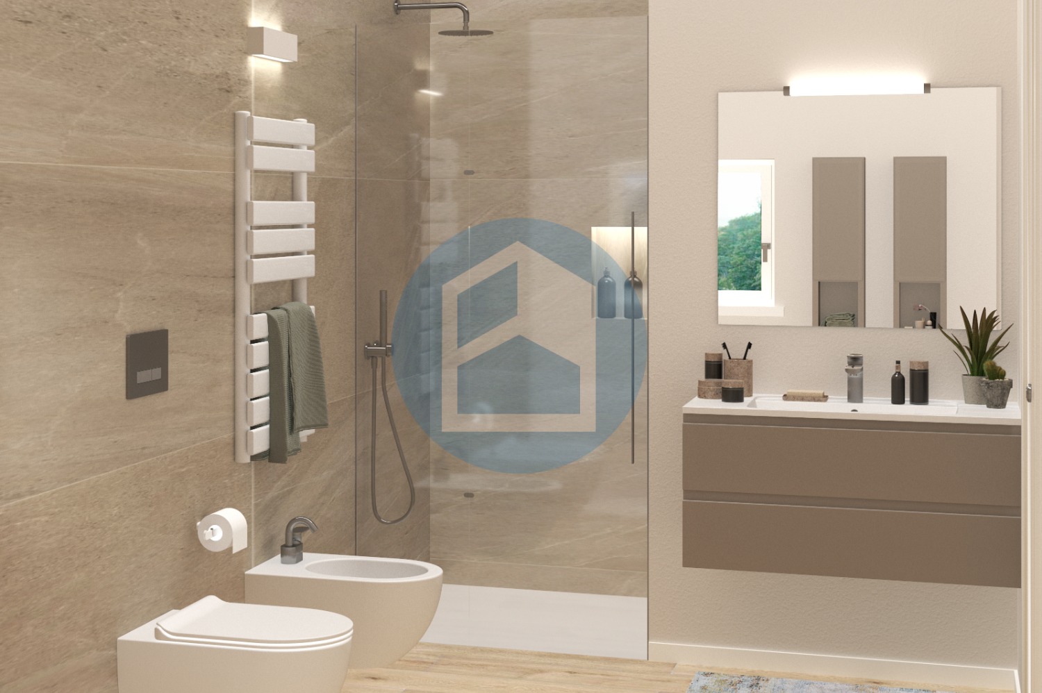 I bagni sono dotati di sanitari di design, termoarredo e piatti doccia moderni.
