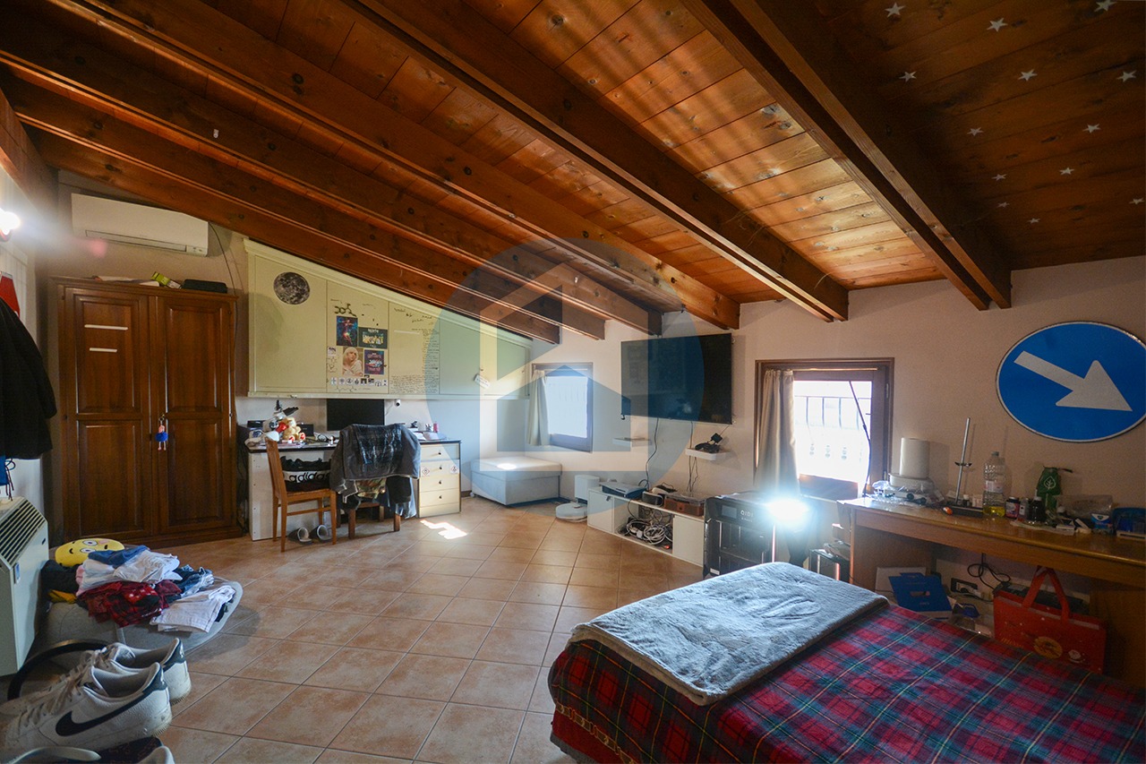 Al primo piano con travi a vista in legno naturale, abbiamo una camera da letto dalle generosissime dimensioni, un’altra camera adibita a cabina armadio, un ampio bagno e un accogliente zona giorno con salotto, sala da pranzo e cucina il tutto open space.