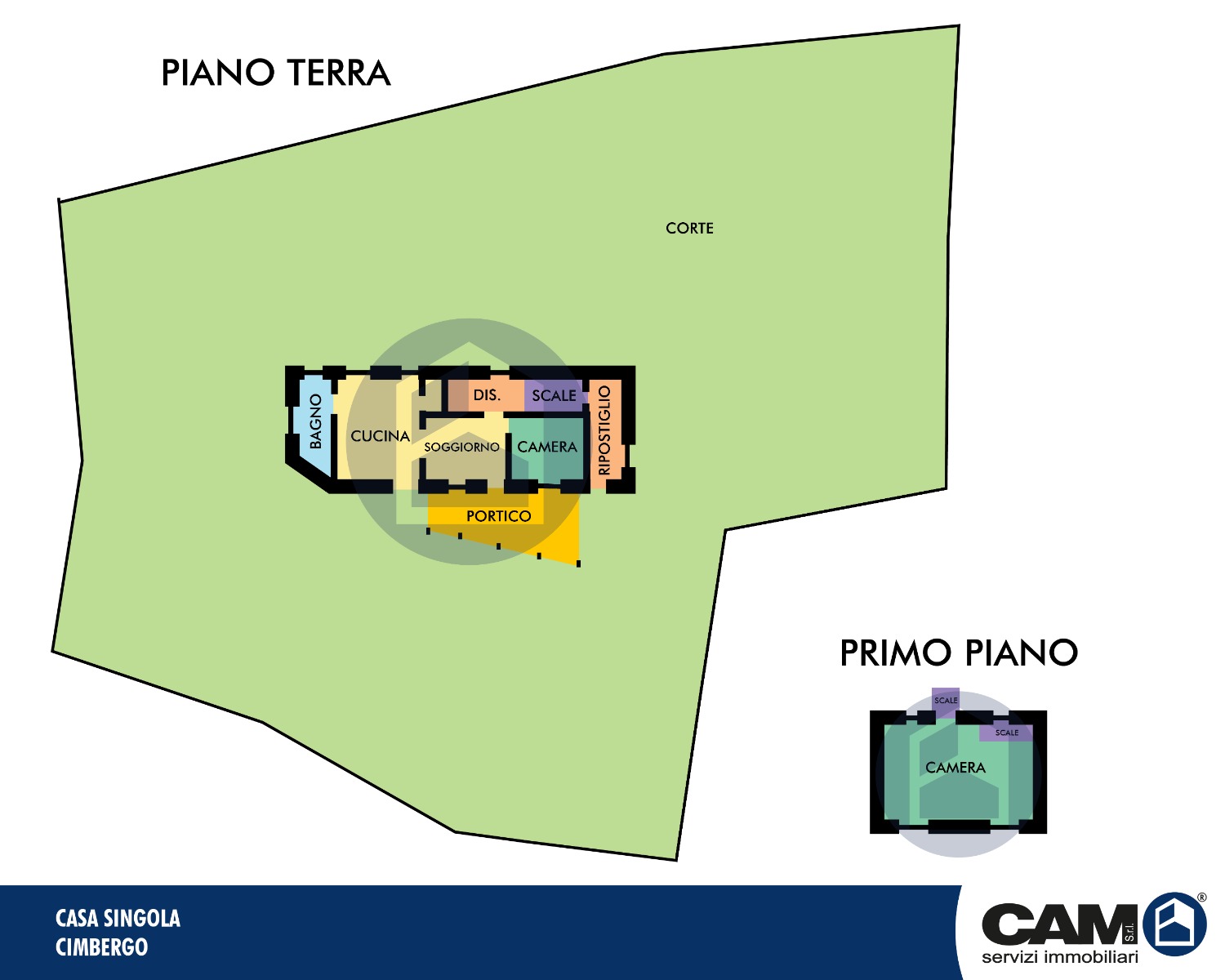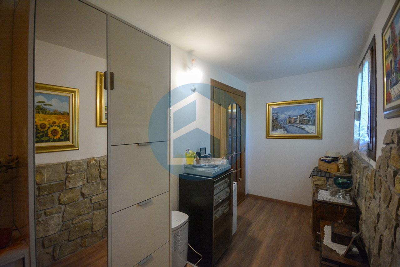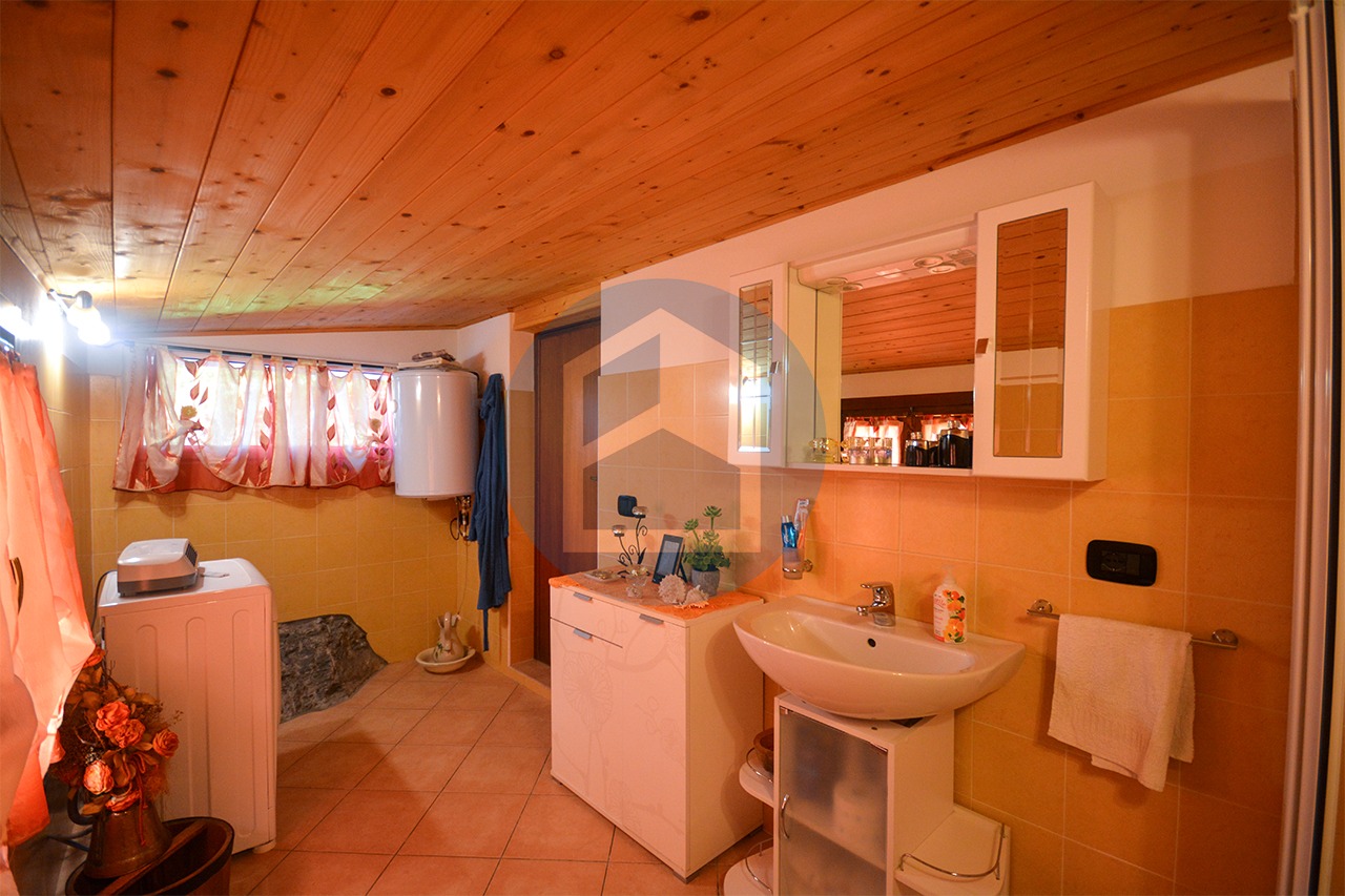 Al piano terra si apre una luminosa zona living con stufa a pellet e con cucina abitabile, un ripostiglio una camera matrimoniale oltre ad un bagno finestrato.