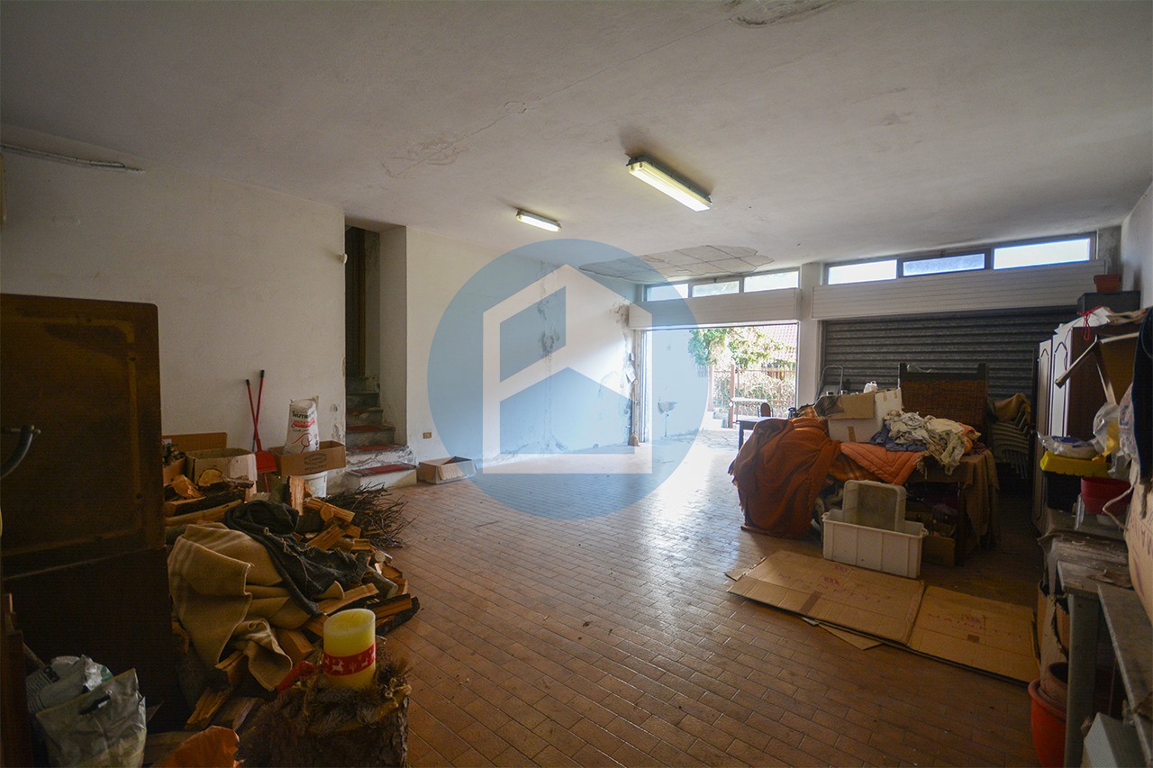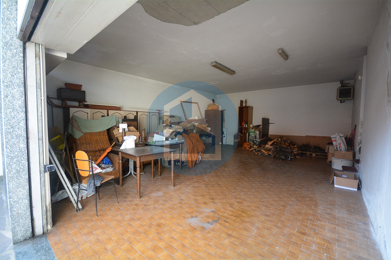 Al piano interrato è presente un ampio garage doppio di mq. 70 ca. con doppia basculante elettrica, un tempo adibito a negozio. Il garage è collegato internamente all’abitazione tramite una scala che conduce anche a ulteriori locali cantina, ideali come spazi di deposito.