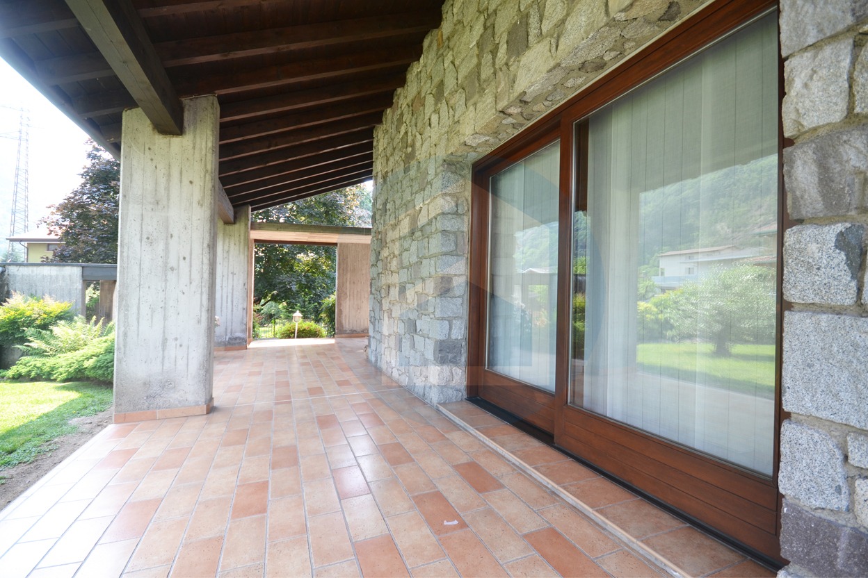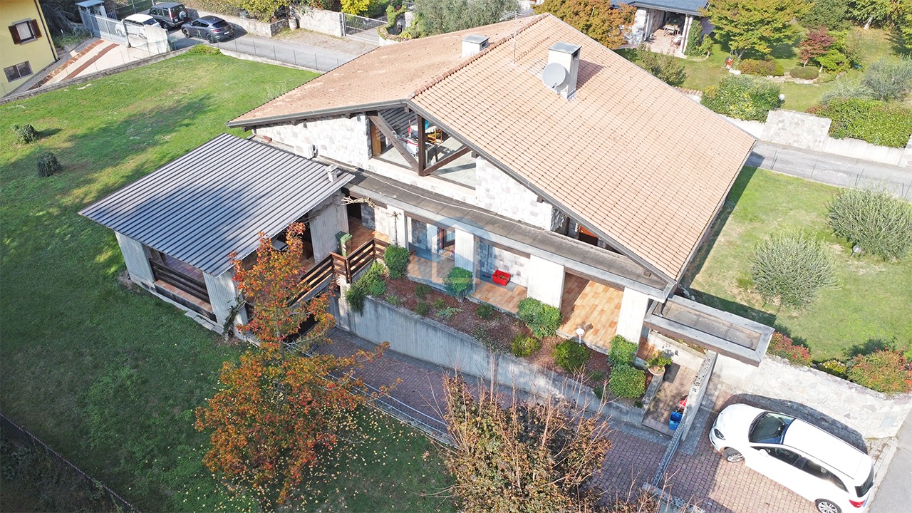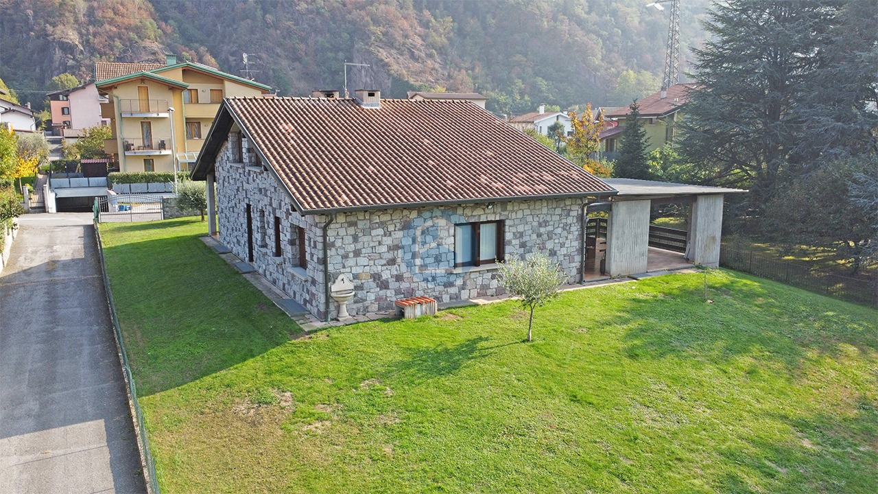 A Esine, in tranquilla zona residenziale con unità immobiliari di recente realizzazione, villa singola disposta su 3 livelli, di cui 2 fuori terra con giardino esclusivo piantumato di mq. 1.300 ca. che la circonda.