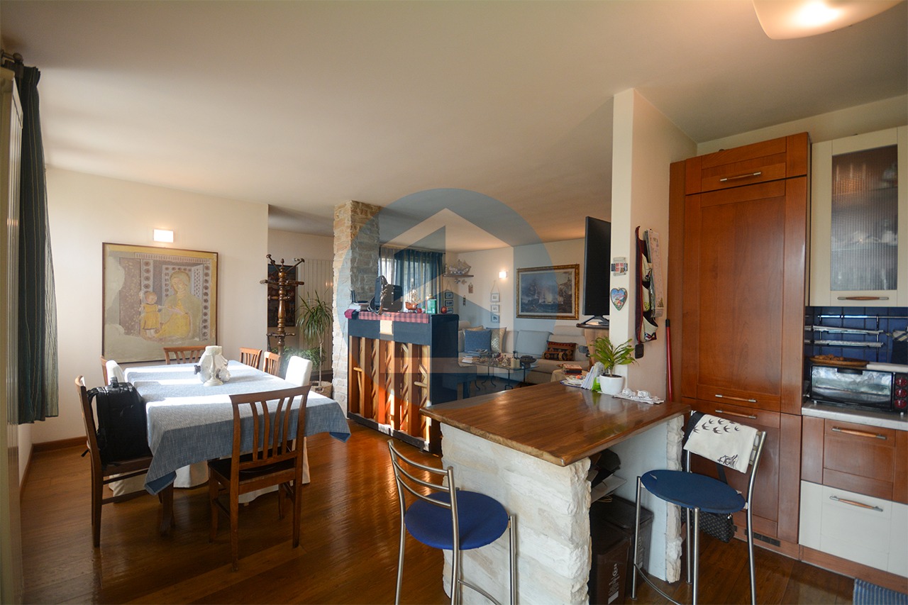 L’abitazione è arricchita da un ampio terrazzo di mq. 25 ca. e da un comodo ripostiglio oggi adibito a palestra domestica.
