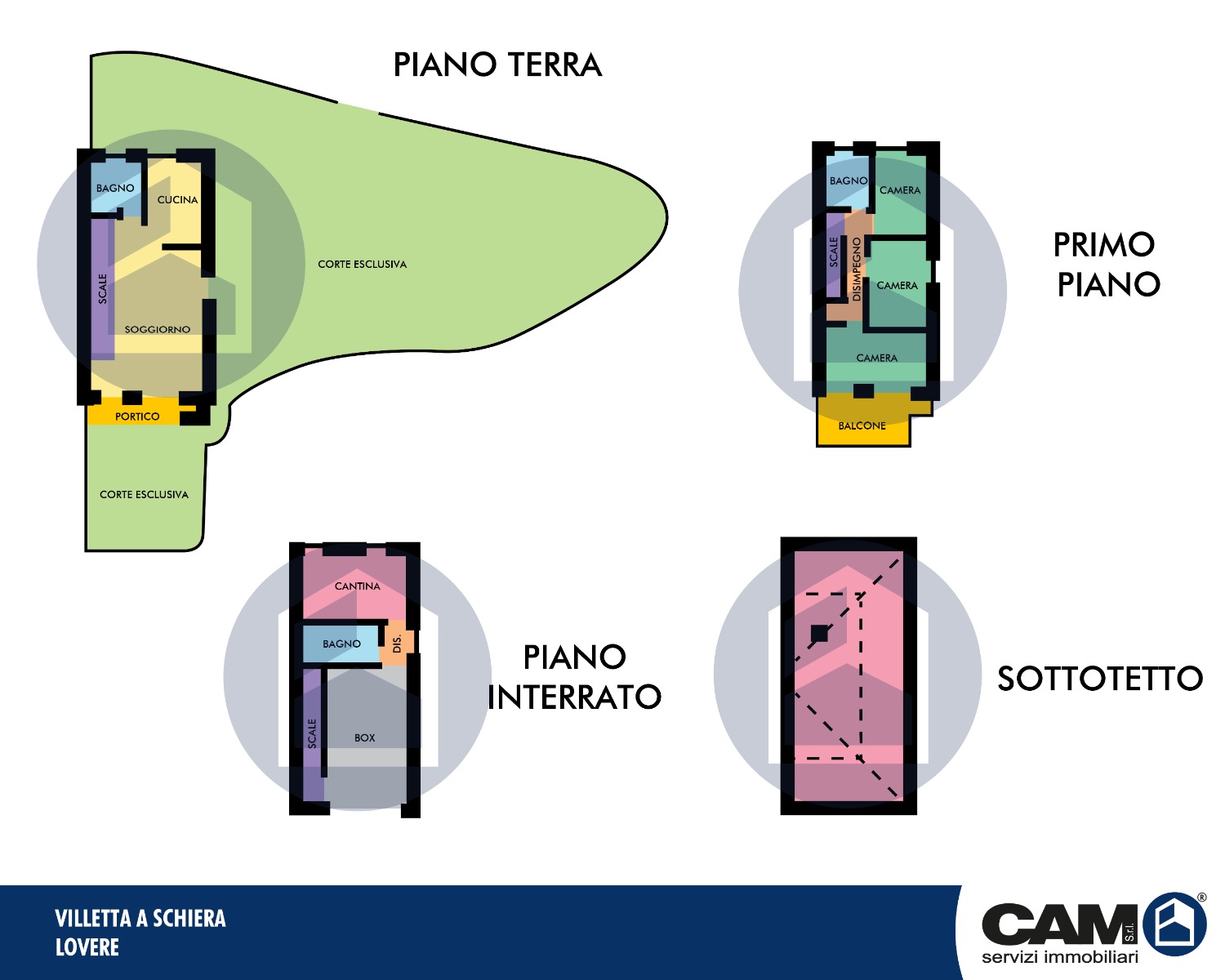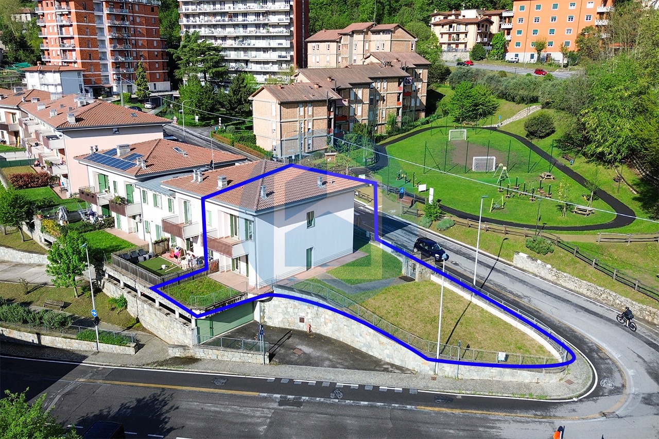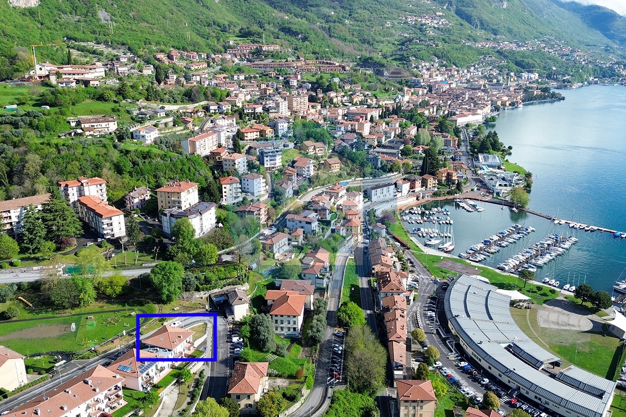 A Lovere, in zona tranquilla, ben esposta e comoda ai principali servizi, villetta a schiera di testa con incantevole vista lago e ampio giardino di mq. 250,00 ca.